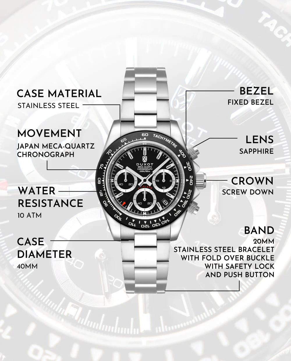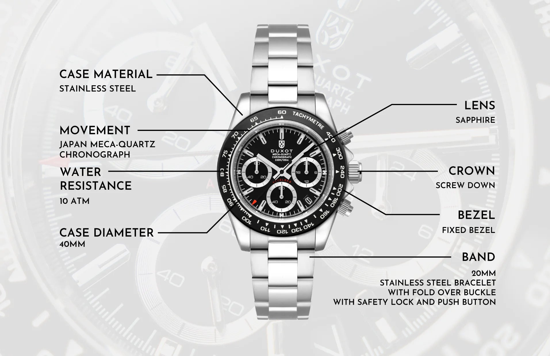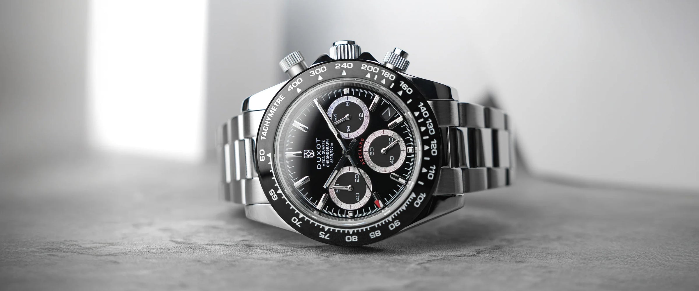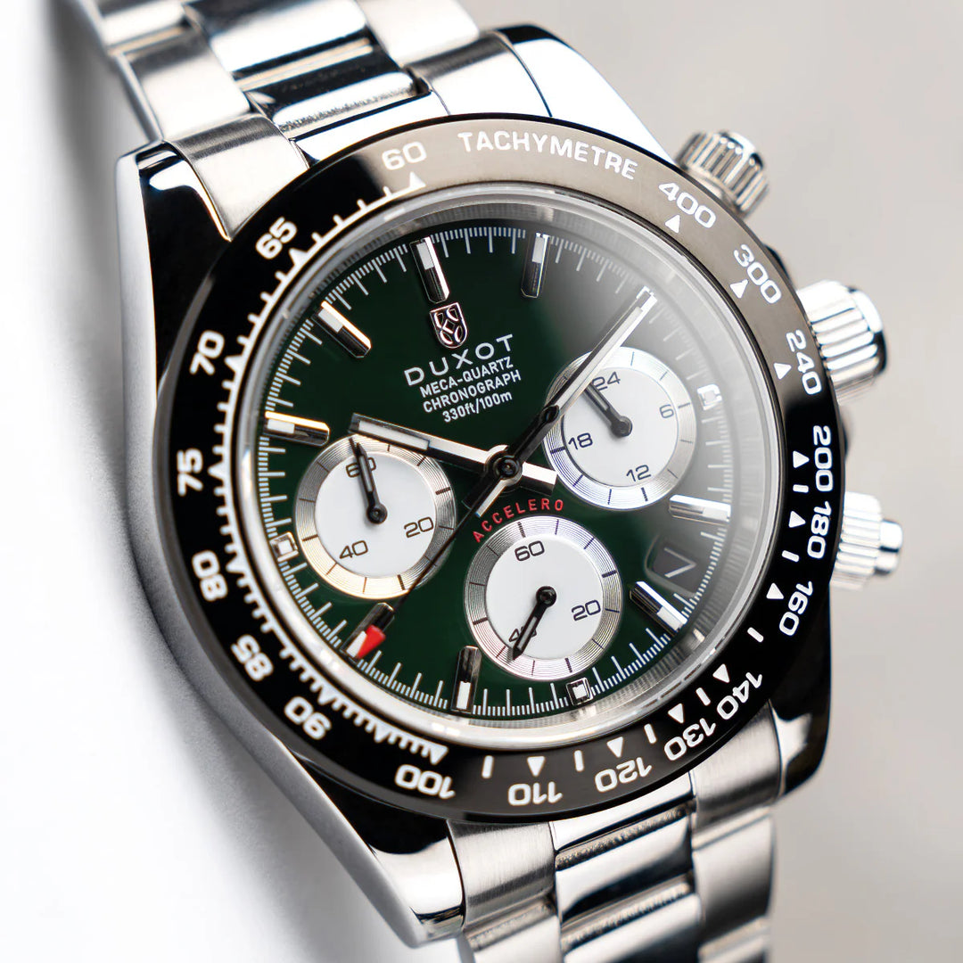Descubra o equilíbrio perfeito entre maestria técnica e estilo atemporal. Movido por um movimento cronógrafo quartzo japonês e envolto em uma robusta caixa de aço inoxidável de 40mm, o Accelero é o acessório essencial para o seu pulso.