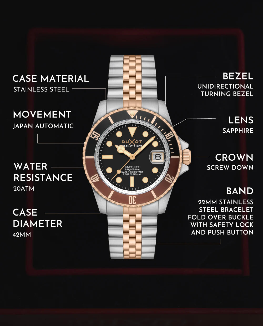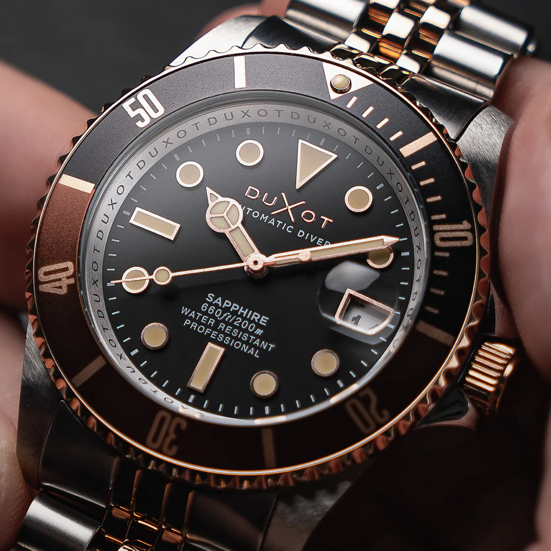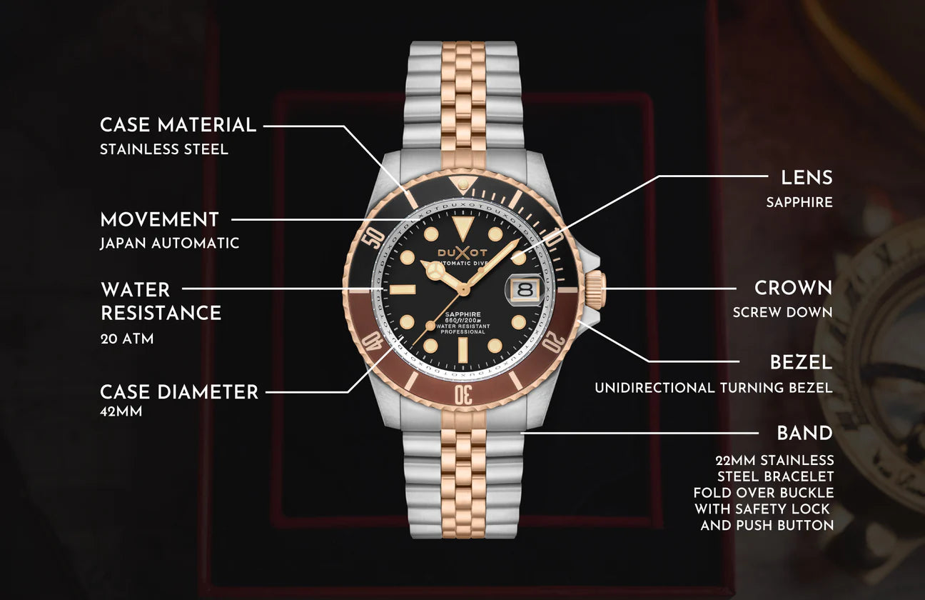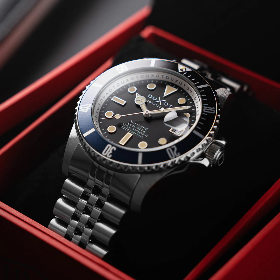 Redescubra a sofisticação atemporal com o Atlantica Diver Automatic. Projetado para desempenho e estilizado com elegância, ele conta com movimento automático japonês, um marcante aro bicolor e lente de safira para uma leitura cristalina do tempo.