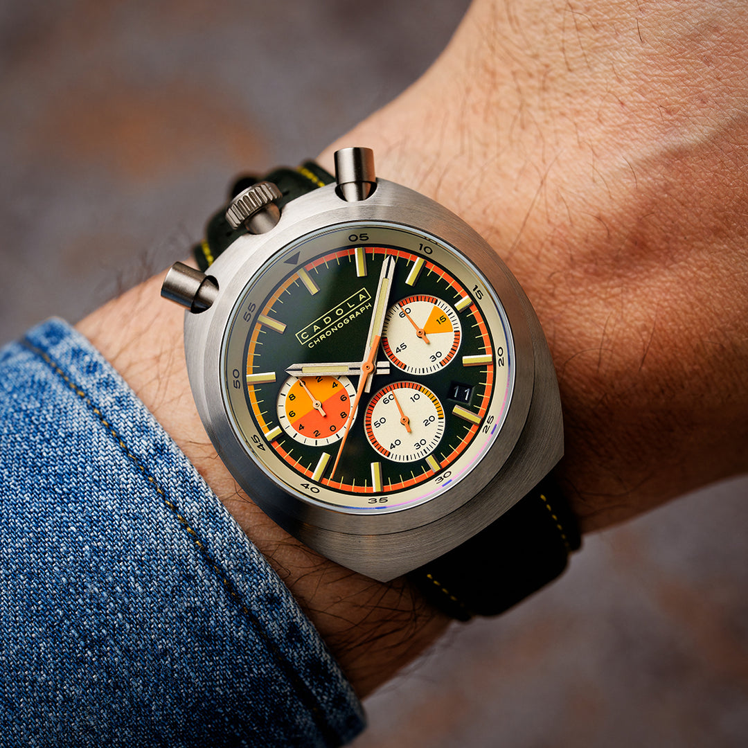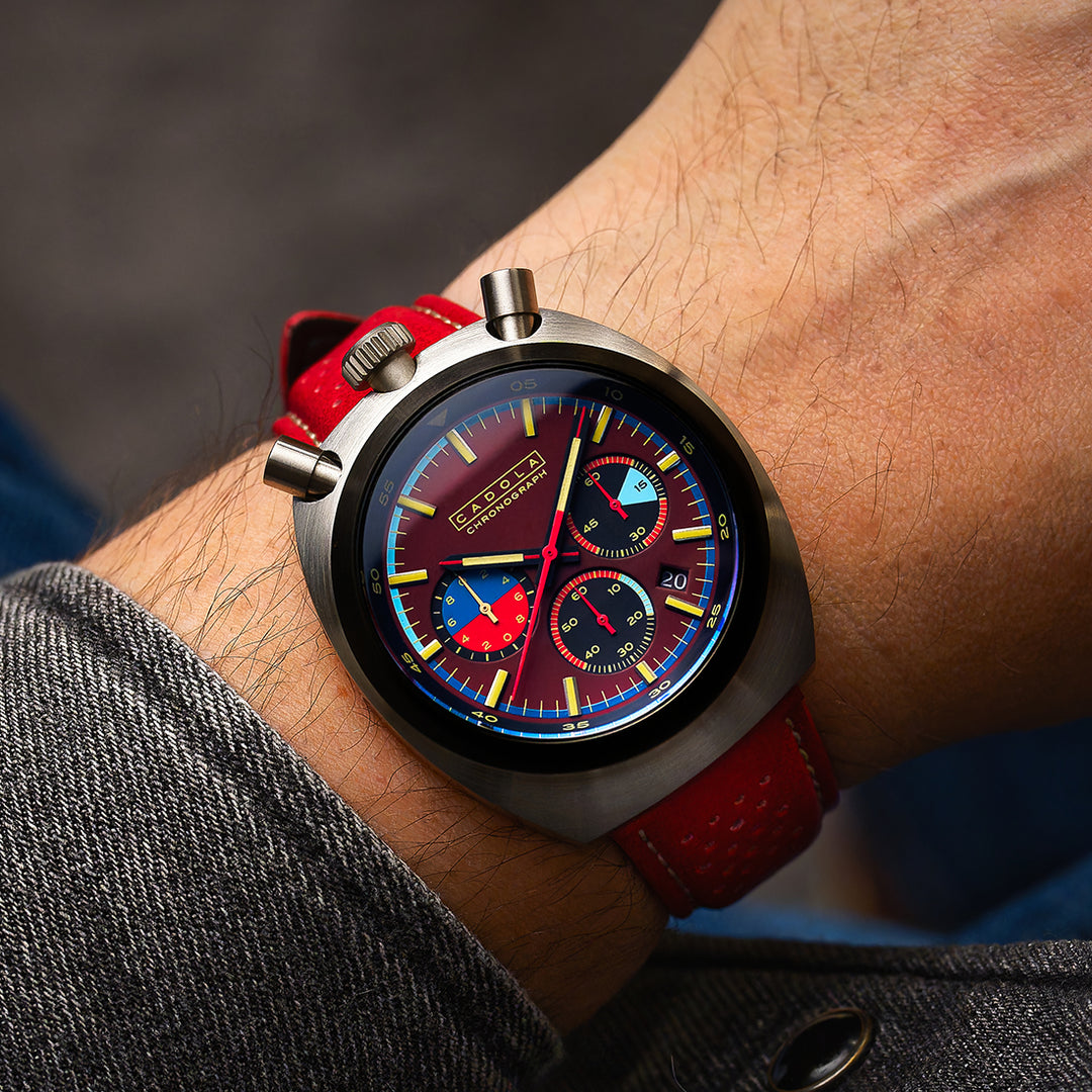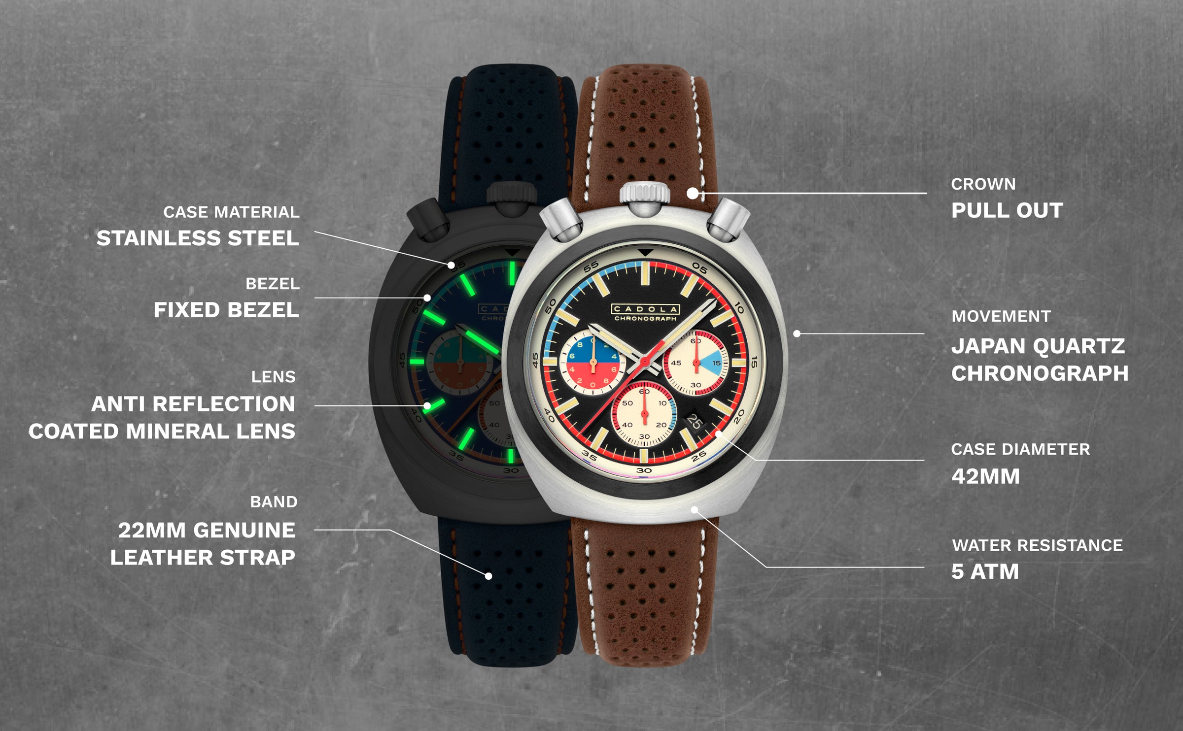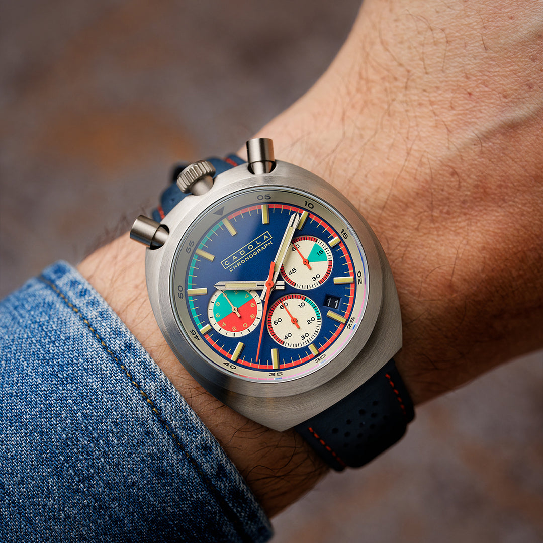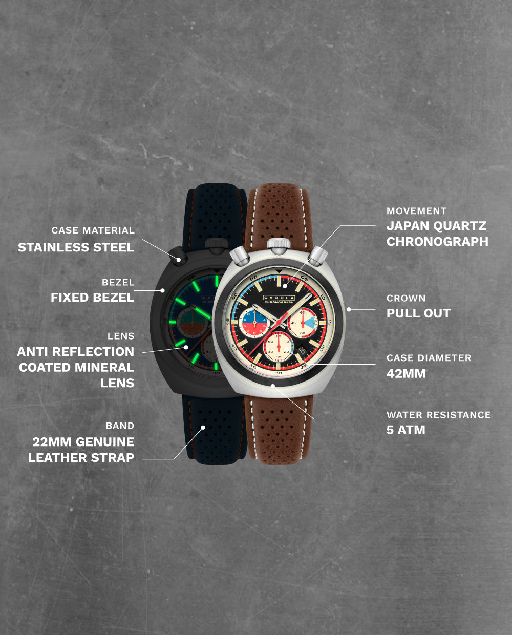 Apresentamos o Testa di Toro Chronograph, um relógio ousado inspirado no mundo de alta velocidade do rally automobilístico. Disponível em cinco cores distintas — Chicane Black, Ignition Blue, Speedster Green, Beige Burnout e Fireball Red — este cronógrafo foi criado para quem vive a vida na pista rápida.