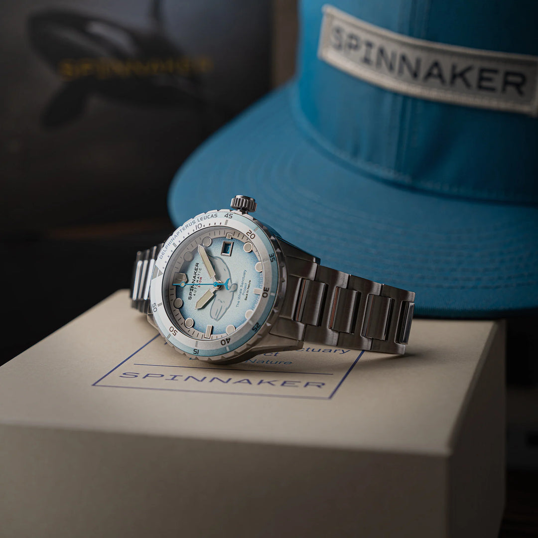 • A edição limitada do Hass Automatic Whale Sanctuary Project presta homenagem aos majestosos habitantes do oceano que cativam nossos corações - as baleias. Composta por duas variantes distintas, a coleção é a personificação do espírito da Spinnaker, que combina estilo e substância com um profundo apreço pela vida marinha.