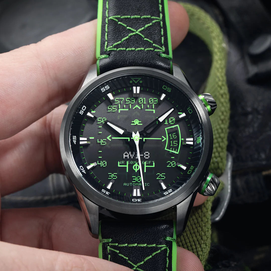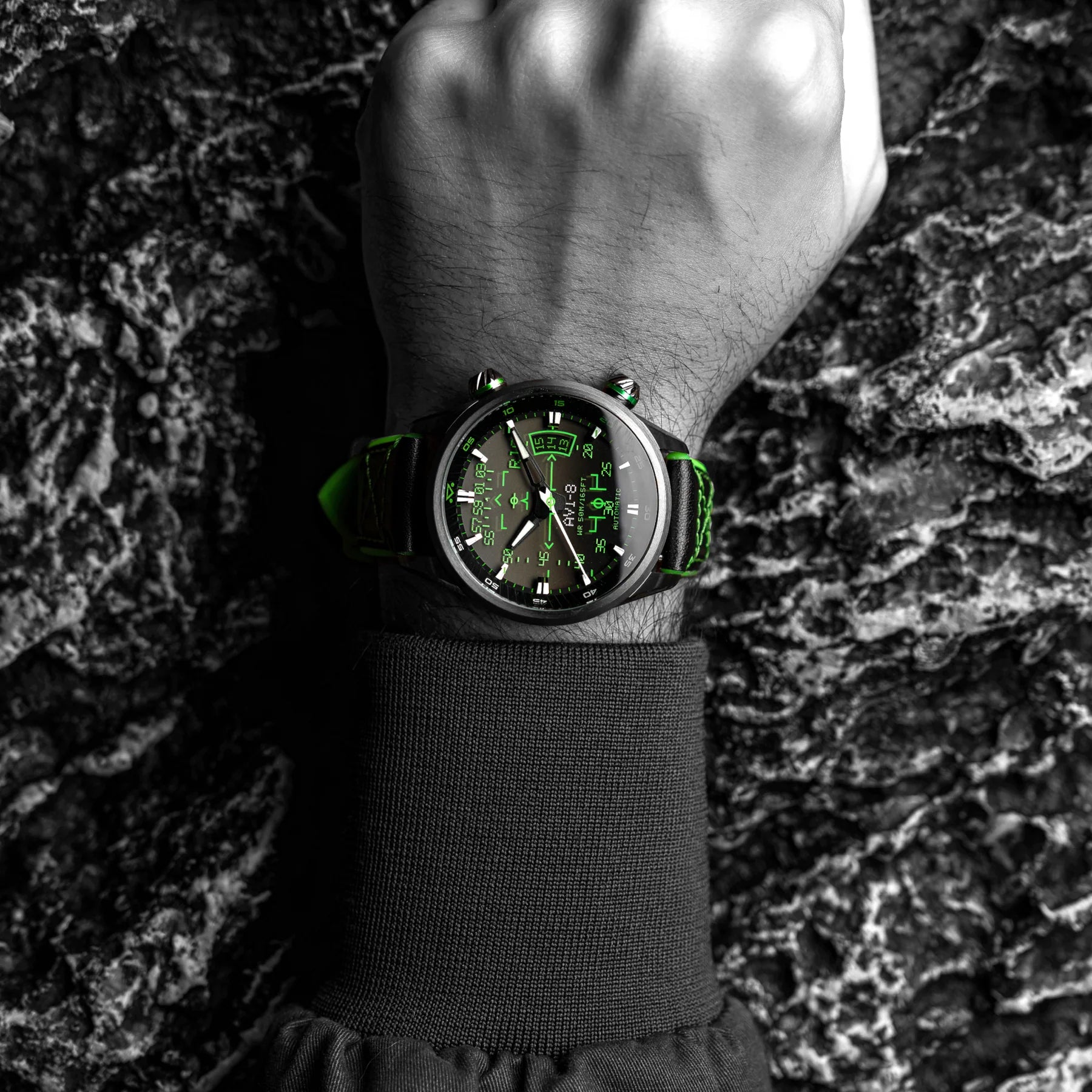 Com elementos luminescentes estrategicamente integrados no mostrador e na pulseira, o Hawker Harrier HUD Automatic proporciona uma visão noturna incomparável.