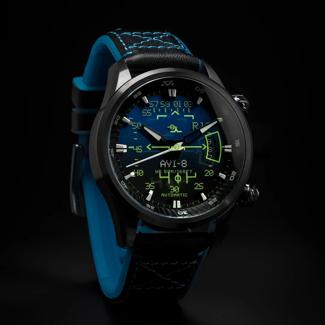 Com elementos luminescentes estrategicamente integrados no mostrador e na pulseira, o Hawker Harrier HUD Automatic proporciona uma visão noturna incomparável.