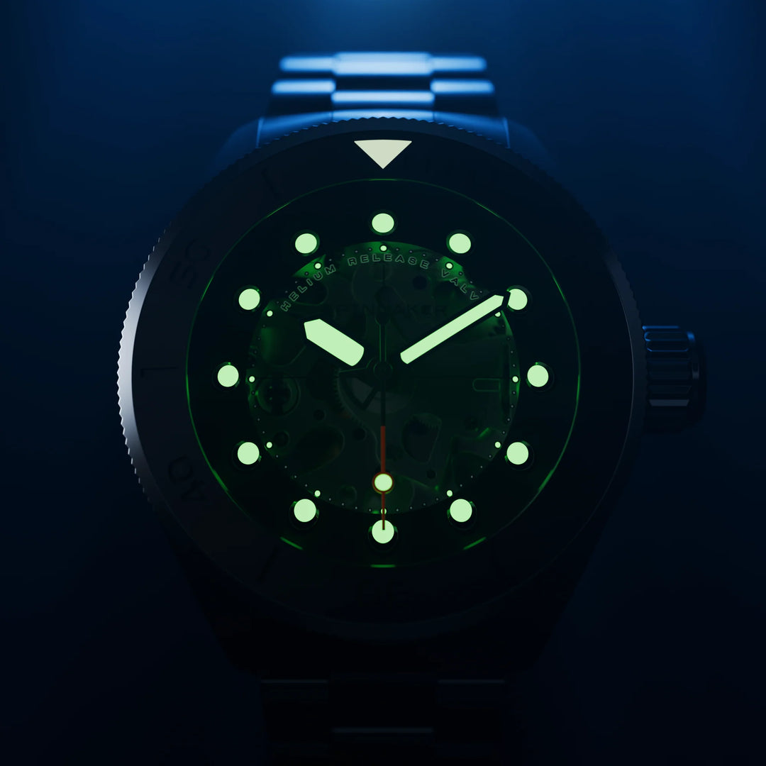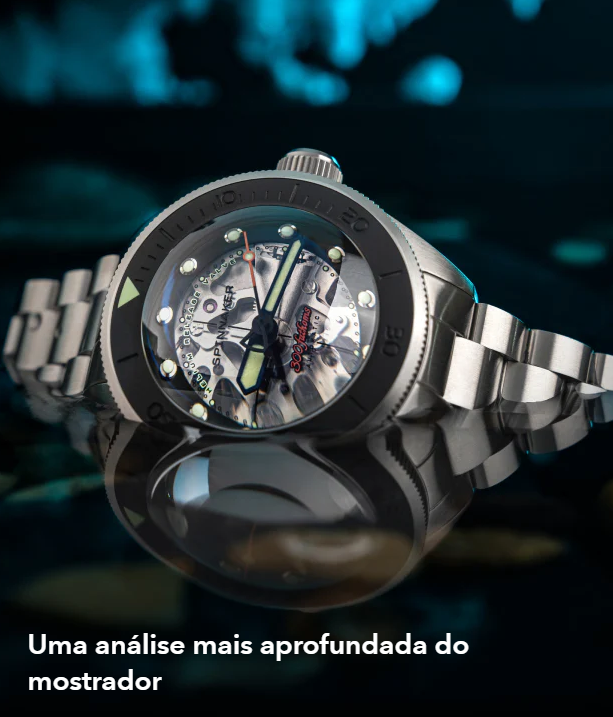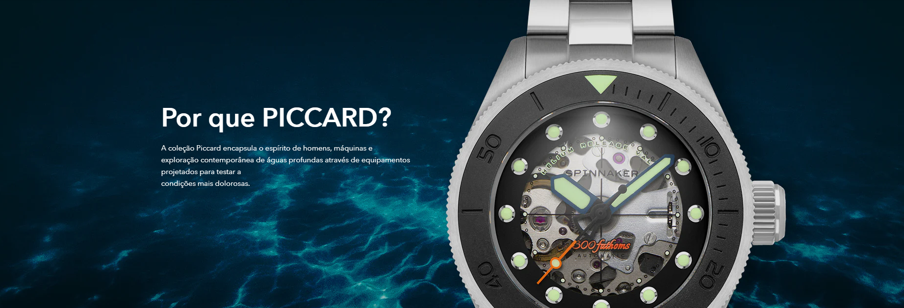 • Ultrapassando os limites do design de relógios de mergulho, o Piccard Skeleton Automatic é habilmente elaborado em cada detalhe. Sob a impressionante lente em forma de cúpula, o mostrador mostra o cativante funcionamento interno do movimento automático. Com resistência à água de 55 ATM e Super-LumiNova Suíça para melhor legibilidade, este é um relógio excepcional para usar e ver.