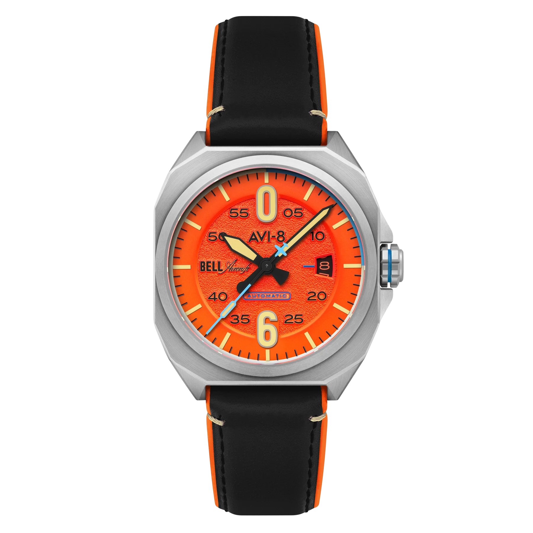 O Bell X-1 Machbuster Automatic apresenta ponteiros e índices luminosos suíços para visibilidade em qualquer condição, um fundo de caixa de exibição transparente com um rotor personalizado inspirado no escapamento do Bell X-1 e uma pulseira híbrida de couro e borracha para durabilidade e conforto. Com um movimento automático japonês e uma lente de safira resistente a arranhões, este relógio oferece precisão e clareza.