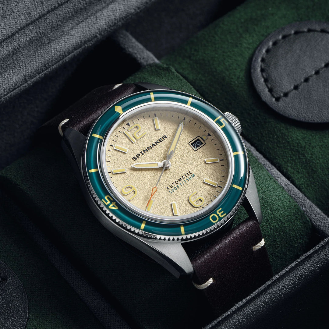 Projetados para o mergulhador e aventureiro ávido, nossos relógios apresentam luminescência radiante que garante legibilidade clara nas profundezas mais escuras e em condições de pouca luz. Seja explorando reinos subaquáticos ou navegando em aventuras noturnas, os mostradores e ponteiros luminosos do Spinnaker fornecem o brilho que você precisa para se manter no curso.