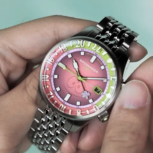 Por trás dos rostos divertidos, existe um relógio sério. Caixa em aço inoxidável, lente de safira, movimento GMT — tudo envolto na engenharia de relógios de mergulho da Spinnaker.