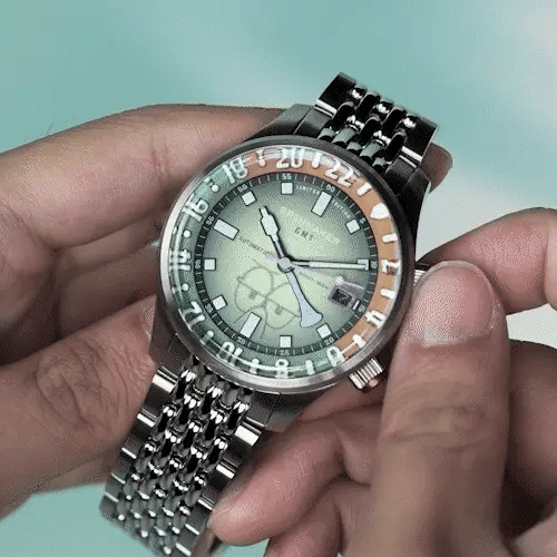 Por trás dos rostos divertidos, existe um relógio sério. Caixa em aço inoxidável, lente de safira, movimento GMT — tudo envolto na engenharia de relógios de mergulho da Spinnaker.
