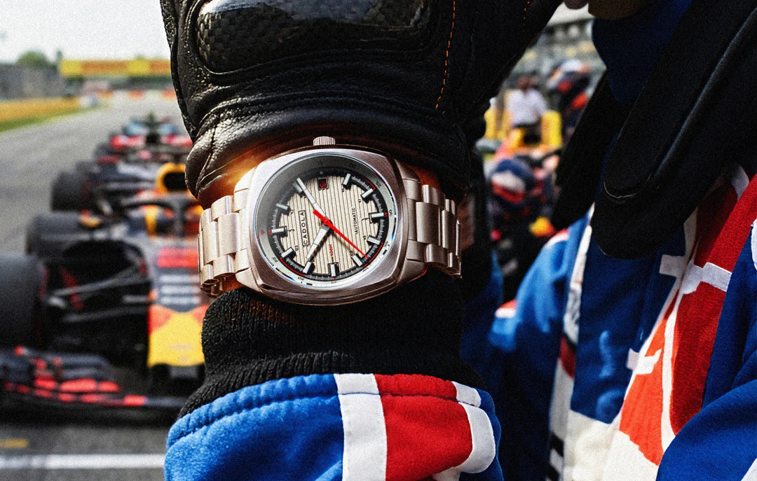 • Experimente as corridas dos velhos tempos com o Buxton Automatic. Com uma caixa de almofada de aço inoxidável de 38 mm, este relógio compacto é alimentado por um movimento automático NH35 confiável. As combinações de cores no mostrador são originárias de carros de corrida clássicos, adicionando um toque de matiz vintage ao seu estilo diário. Este é um relógio resistente e elegante que certamente elevará seu jogo de cronometragem.