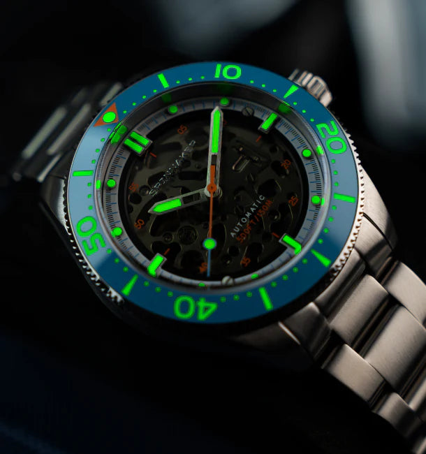 • Uma evolução convincente da icônica coleção Croft da Spinnaker, o Croft 42 Skeleton Automatic oferece três variações distintas de aro – fibra de carbono forjada, aço inoxidável e cerâmica – cada uma conta uma história única de resiliência e estilo. Com o movimento automático esqueletizado NH70 que traz profundidade a cada olhar, é hora, em sua forma mais pura e cativante.