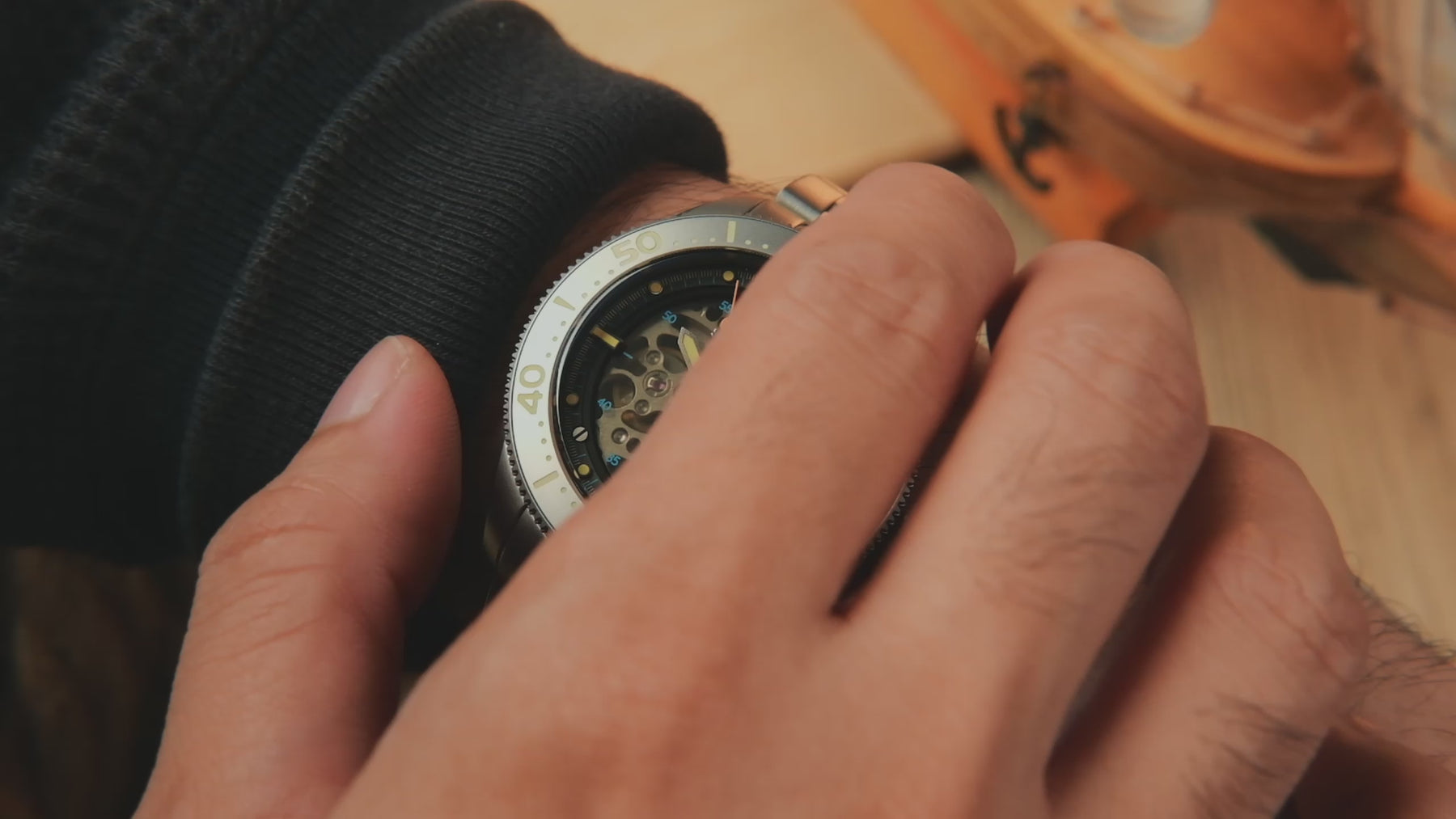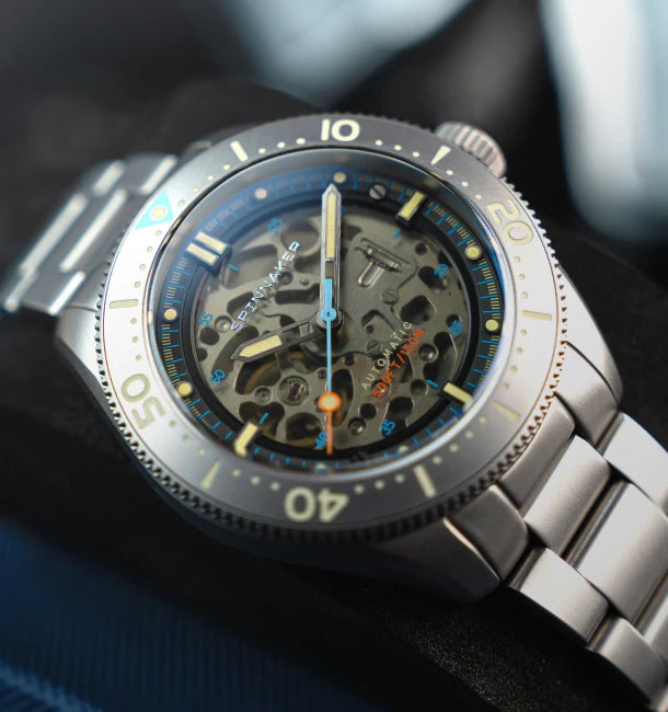 - Uma evolução convincente da icônica coleção Croft da Spinnaker, o Croft 42 Skeleton Automatic oferece três variações distintas de aro – fibra de carbono forjada, aço inoxidável e cerâmica – cada uma conta uma história única de resiliência e estilo. Com o movimento automático esqueletizado NH70 que traz profundidade a cada olhar, é hora, em sua forma mais pura e cativante.