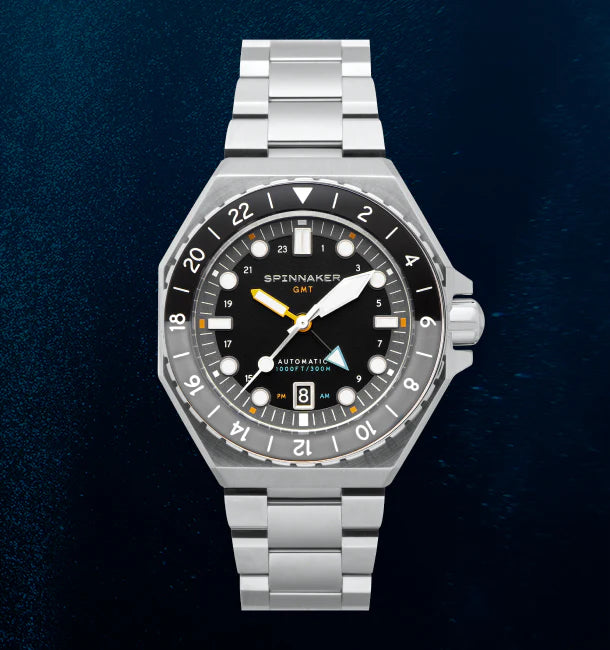 - O Dumas GMT é um relógio automático pronto para viagens pelo mundo, equipado com o movimento automático Seiko NH34 GMT. Um estudo ousado em mecânica de relógios esportivos de alta qualidade injetado com o estilo e talento sinônimos do nome Spinnaker. Com uma pulseira de aço inoxidável sólido em formato hexadecimal e uma pulseira de borracha extra correspondente, o relógio foi projetado adequadamente para todas as condições.