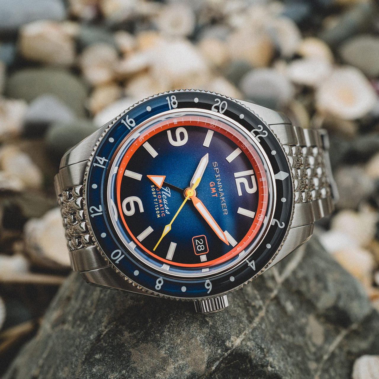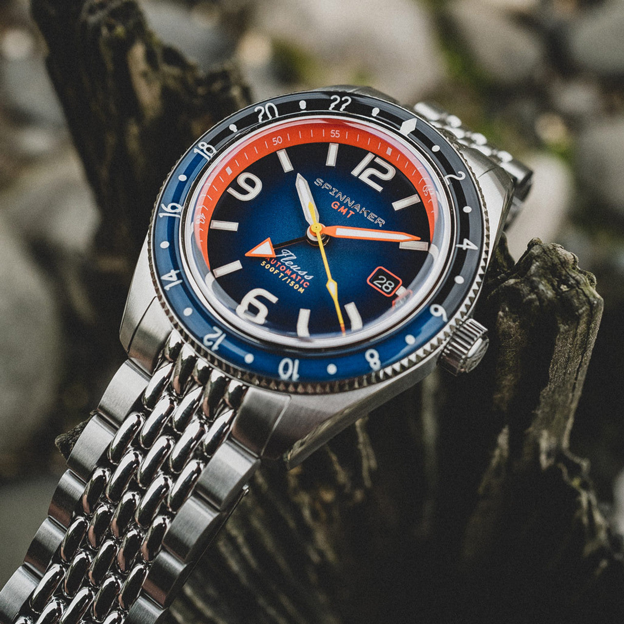 Projetados para o mergulhador e aventureiro ávido, nossos relógios apresentam luminescência radiante que garante legibilidade clara nas profundezas mais escuras e em condições de baixa luminosidade. Seja explorando reinos subaquáticos ou navegando em aventuras noturnas, os mostradores e ponteiros luminosos da Spinnaker fornecem o brilho necessário para manter você no caminho certo.