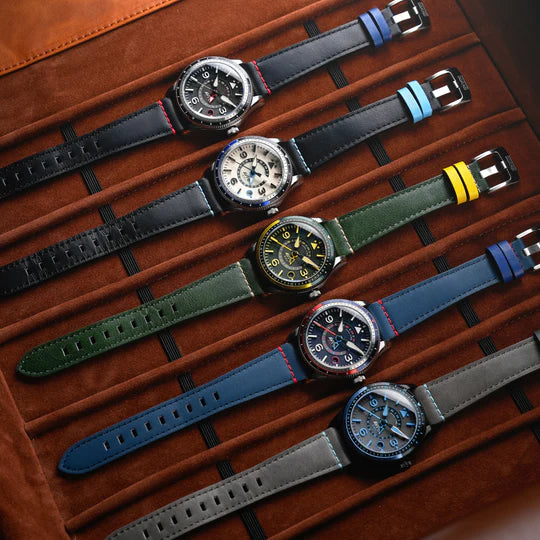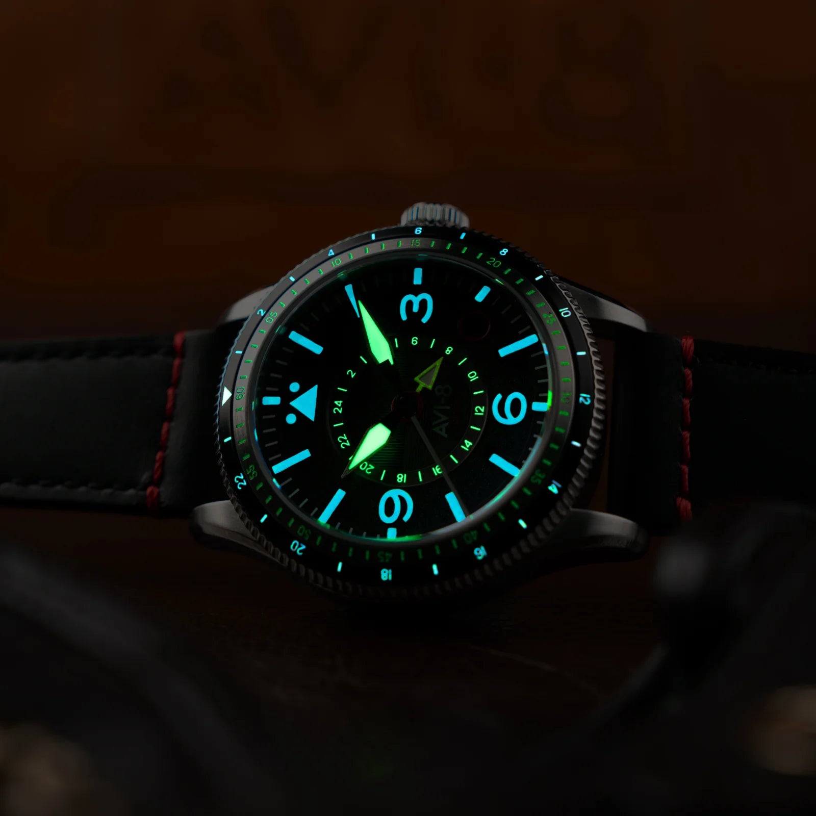 Construído com um movimento automático GMT japonês NH34, o Flyboy Airmaster GMT mantém você conectado em todo o mundo. Com uma caixa de 40 mm e pulseira de couro, este relógio foi criado para aqueles que nunca ficam muito tempo no mesmo lugar.