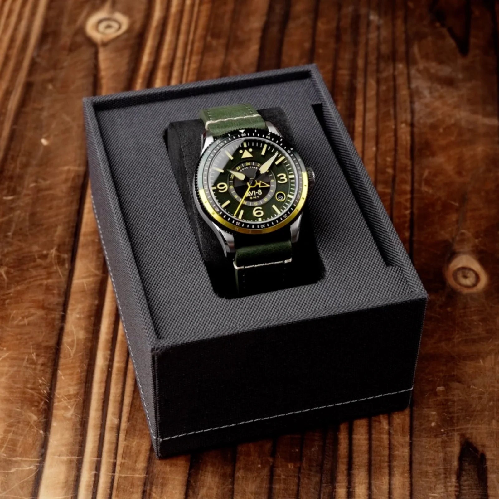 Construído com um movimento automático GMT japonês NH34, o Flyboy Airmaster GMT mantém você conectado em todo o mundo. Com uma caixa de 40 mm e pulseira de couro, este relógio foi criado para aqueles que nunca ficam muito tempo no mesmo lugar.