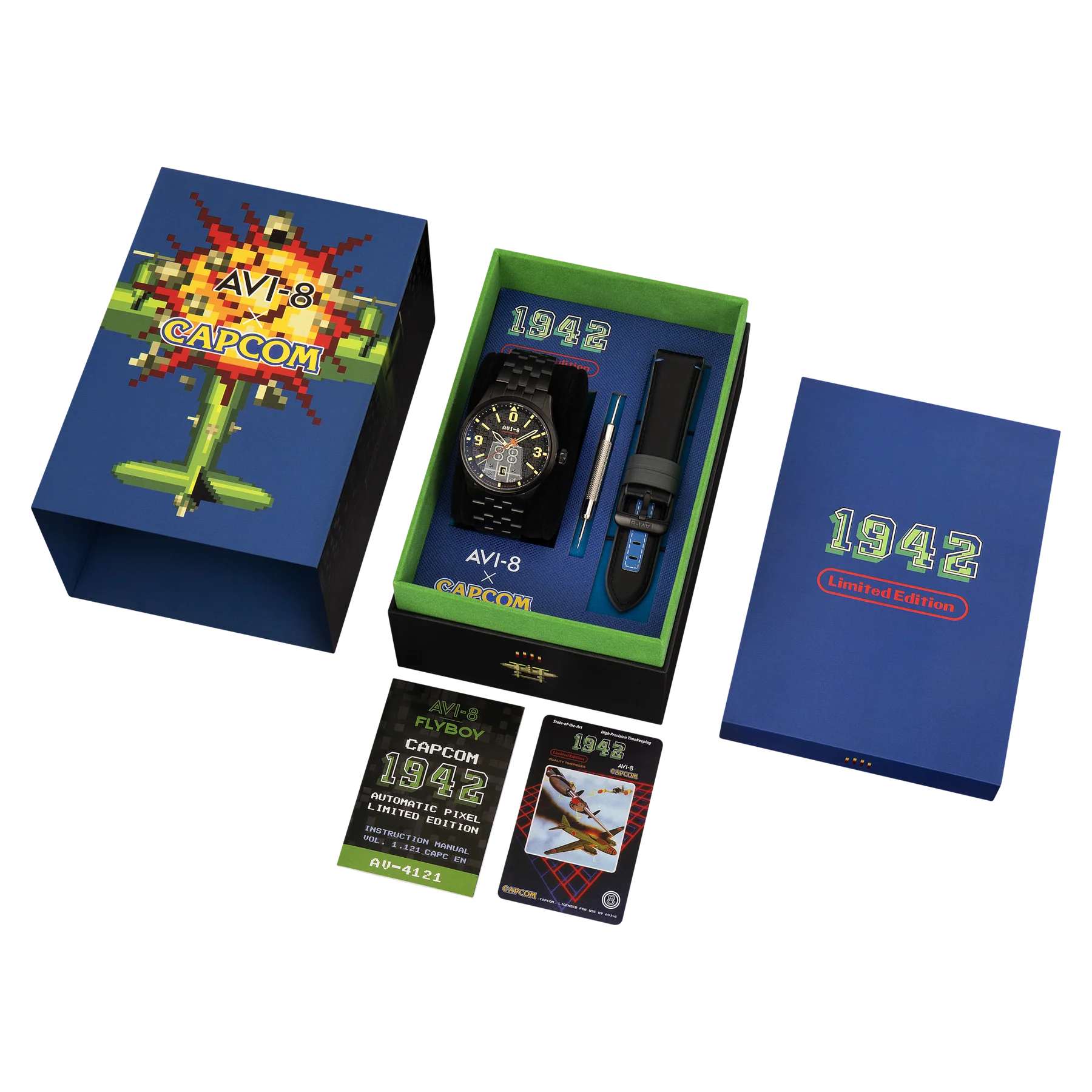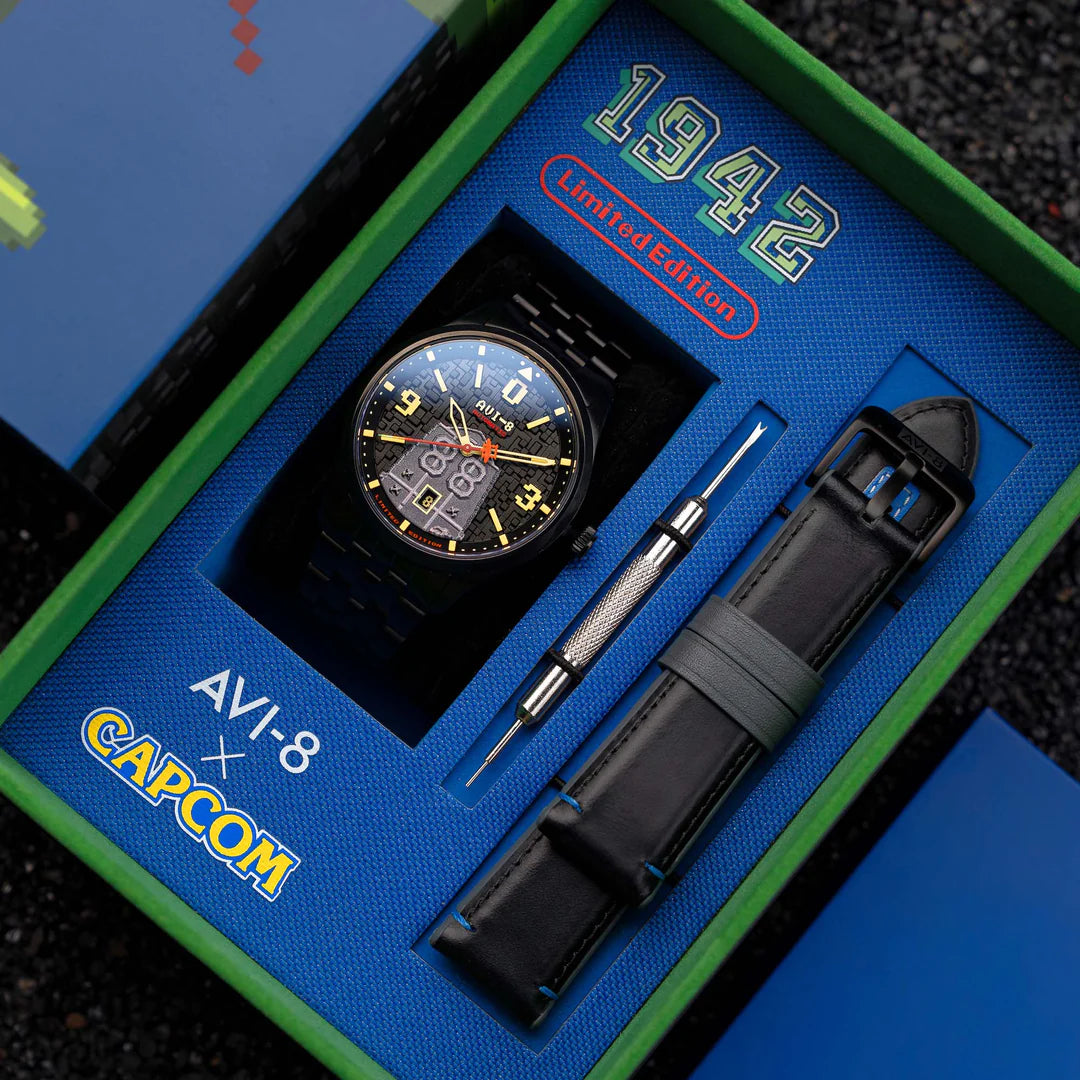Entre numa viagem no tempo com a nossa segunda colaboração com a Capcom®, celebrando o lendário jogo 1942™. Com um mostrador personalizado em pixel art 3D, este relógio de edição limitada dá vida ao jogo.
