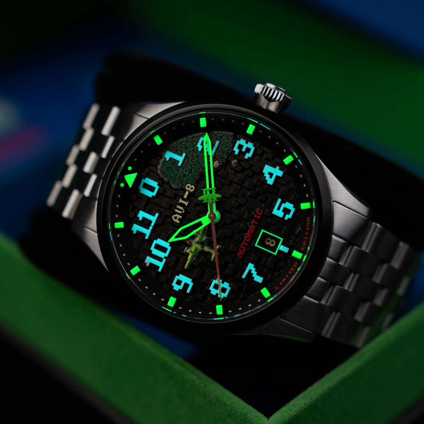 Entre numa viagem no tempo com a nossa segunda colaboração com a Capcom®, celebrando o lendário jogo 1942™. Com um mostrador personalizado em pixel art 3D, este relógio de edição limitada dá vida ao jogo.