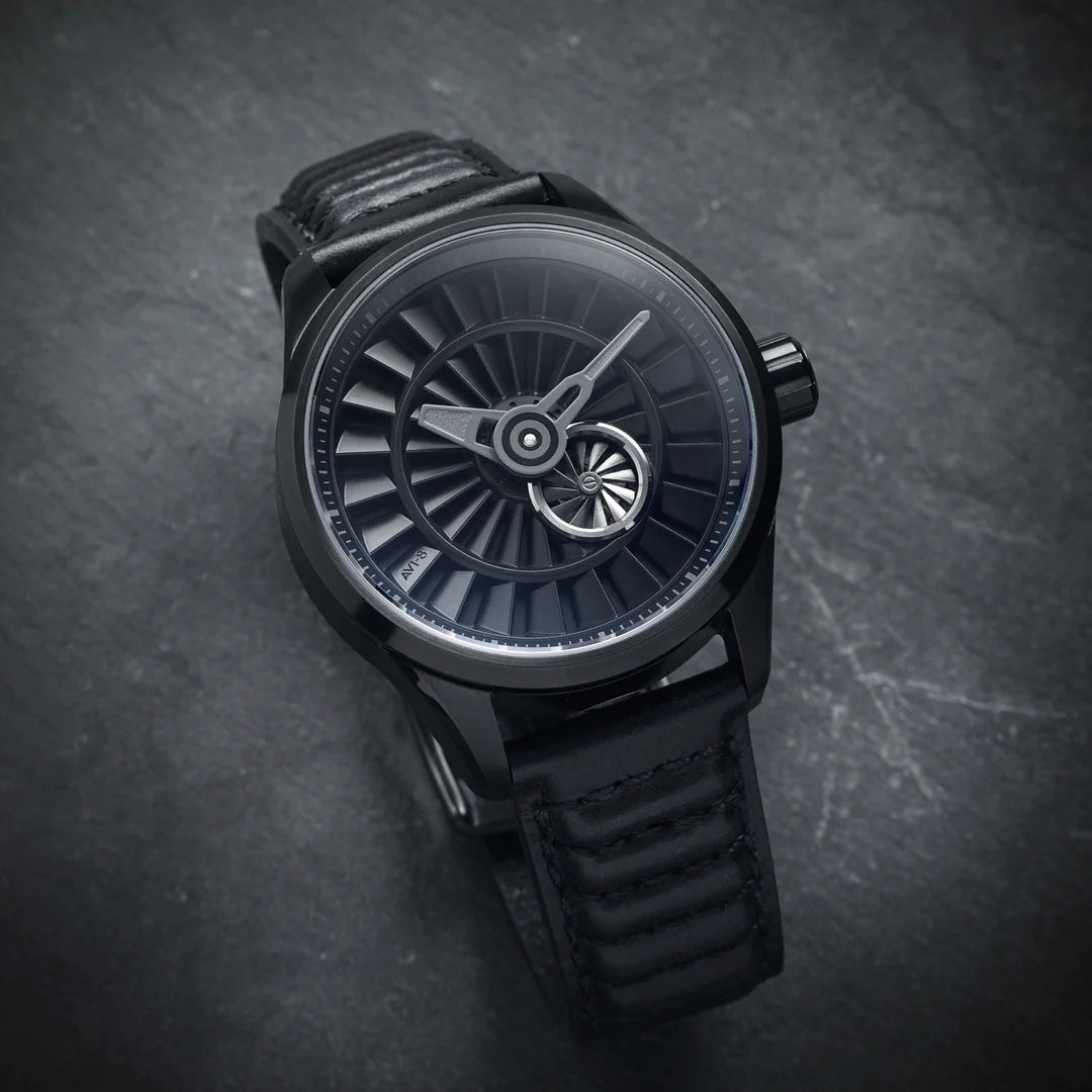 Do seu submostrador personalizado com design inspirado em motores de avião à sua pulseira de couro preta e caixa de aço inoxidável, este é um relógio criado para personificar a força e o poder de um ícone.