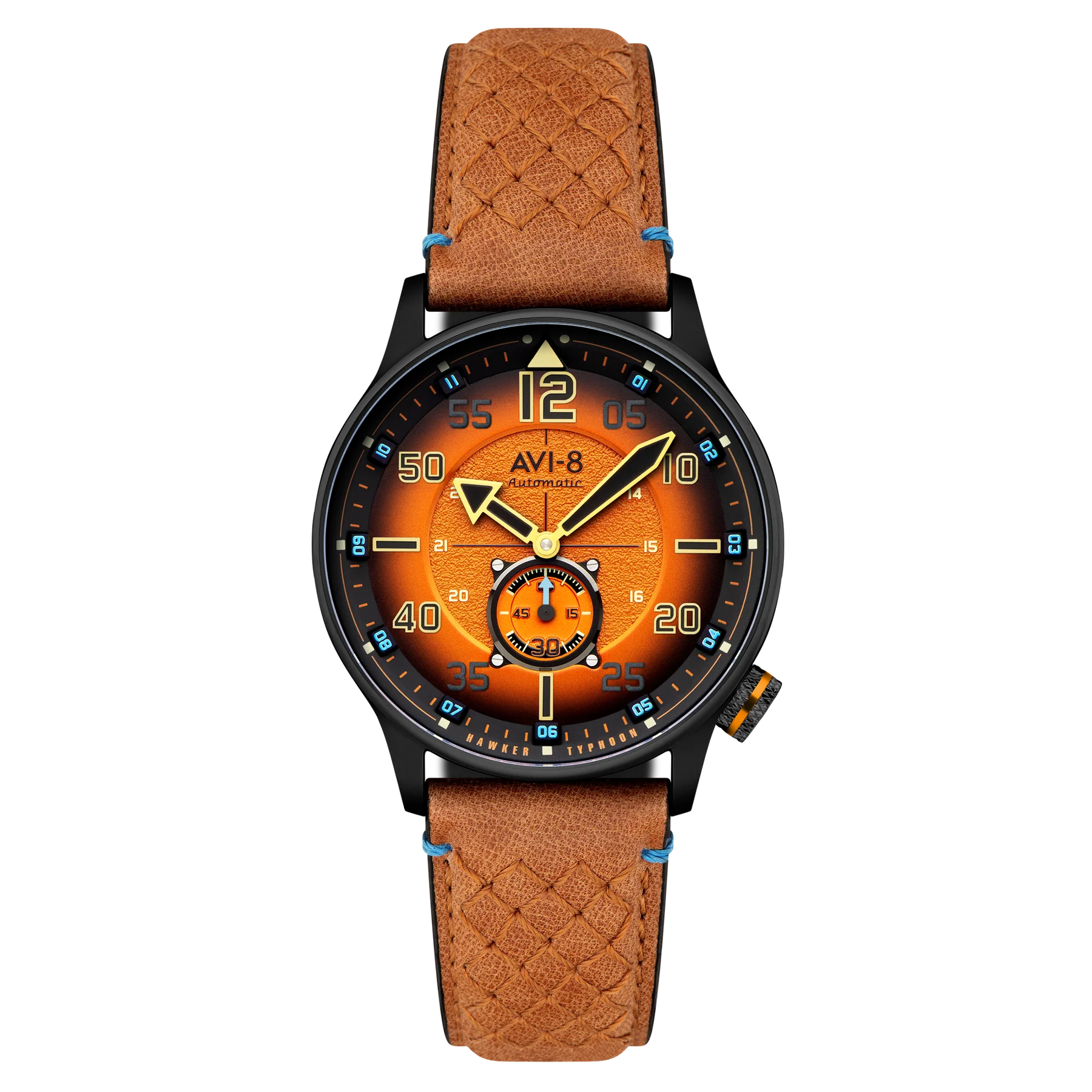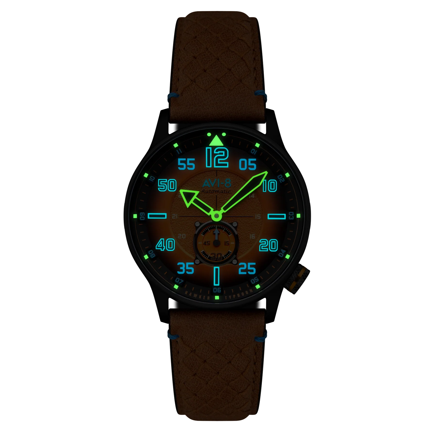 - Honrando o legado do Wing Commander John Robert Baldwin, o ás da caça com maior pontuação que voou o Hawker Typhoon durante a Segunda Guerra Mundial. O design deste relógio também homenageia seu homônimo com ponteiros e uma moldura de mostrador inspirada no painel de instrumentos da aeronave icônica. O padrão de costura de couro na pulseira reflete o design do assento do Hawker Typhoon, realçando seu apelo autêntico.