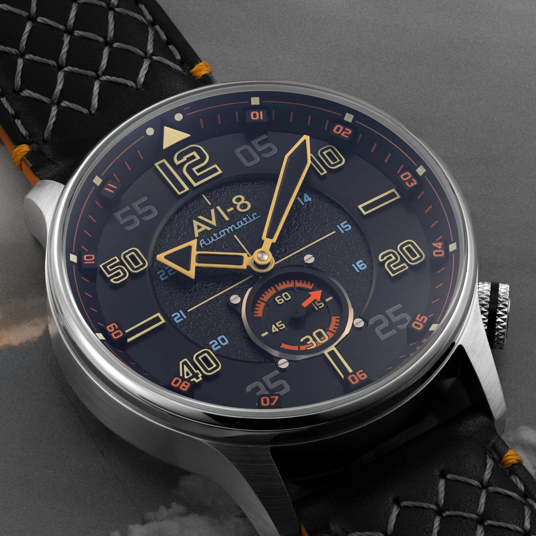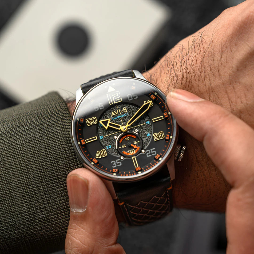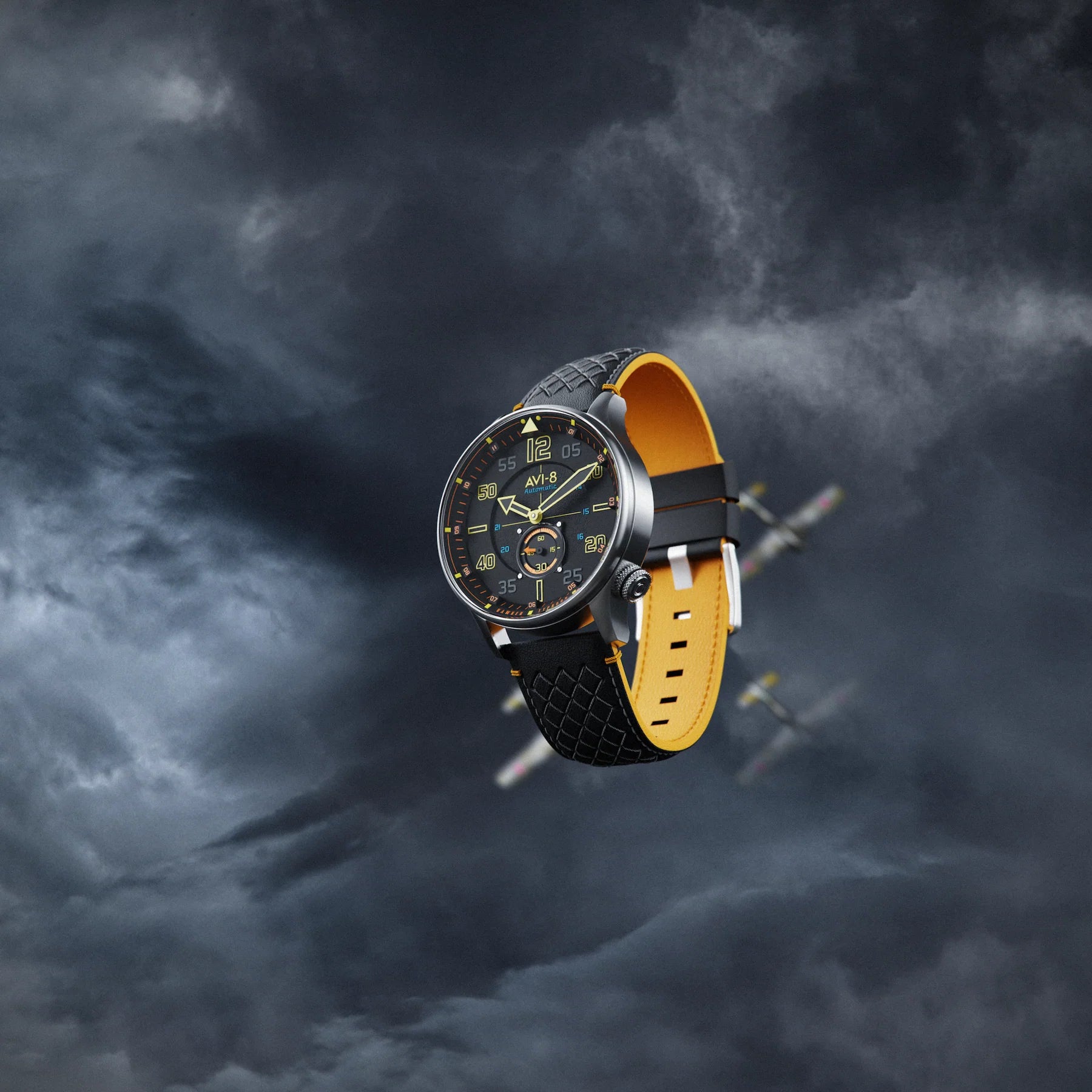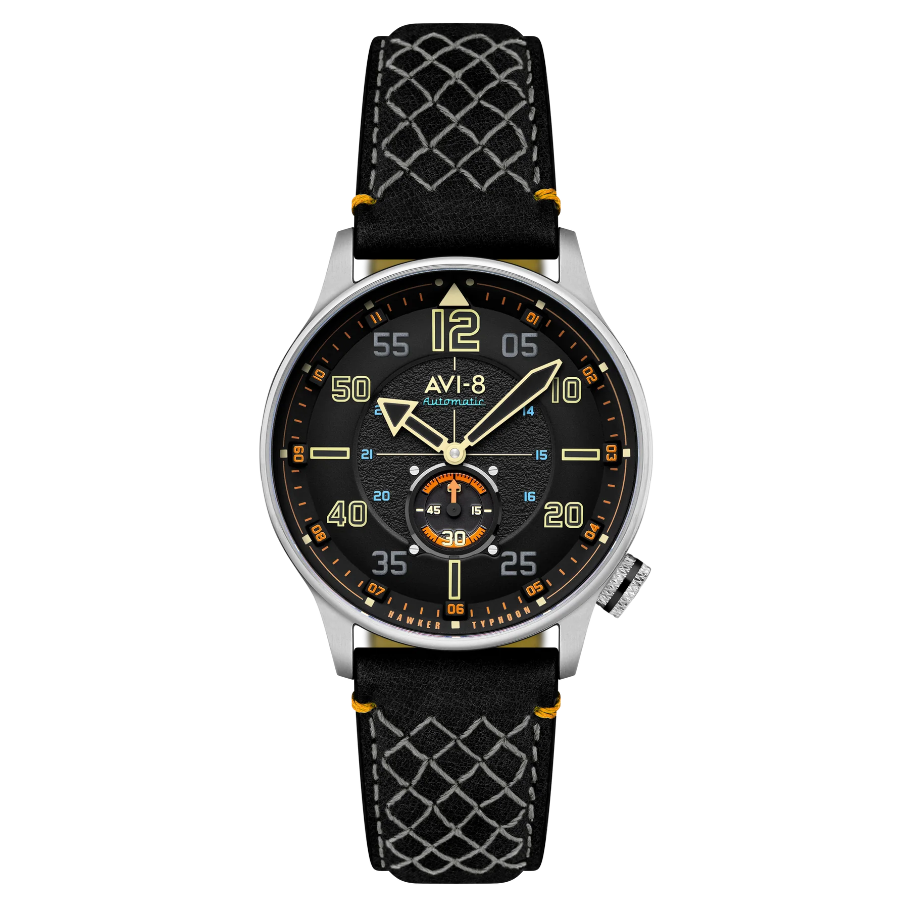 - Honrando o legado do Wing Commander John Robert Baldwin, o ás da caça com maior pontuação que voou o Hawker Typhoon durante a Segunda Guerra Mundial. O design deste relógio também homenageia seu homônimo com ponteiros e uma moldura de mostrador inspirada no painel de instrumentos da aeronave icônica. O padrão de costura de couro na pulseira reflete o design do assento do Hawker Typhoon, realçando seu apelo autêntico.