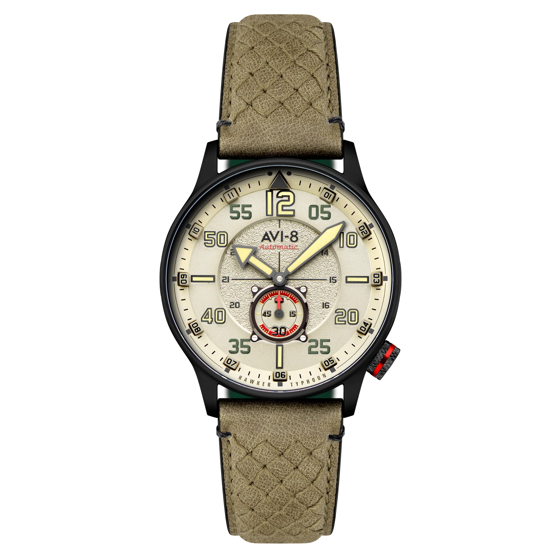 O Hawker Typhoon Baldwin Automatic homenageia seu homônimo com ponteiros e um mostrador inspirado no painel de instrumentos da aeronave icônica. O padrão de costura de couro na pulseira reflete o design do assento do Hawker Typhoon, realçando seu apelo autêntico.