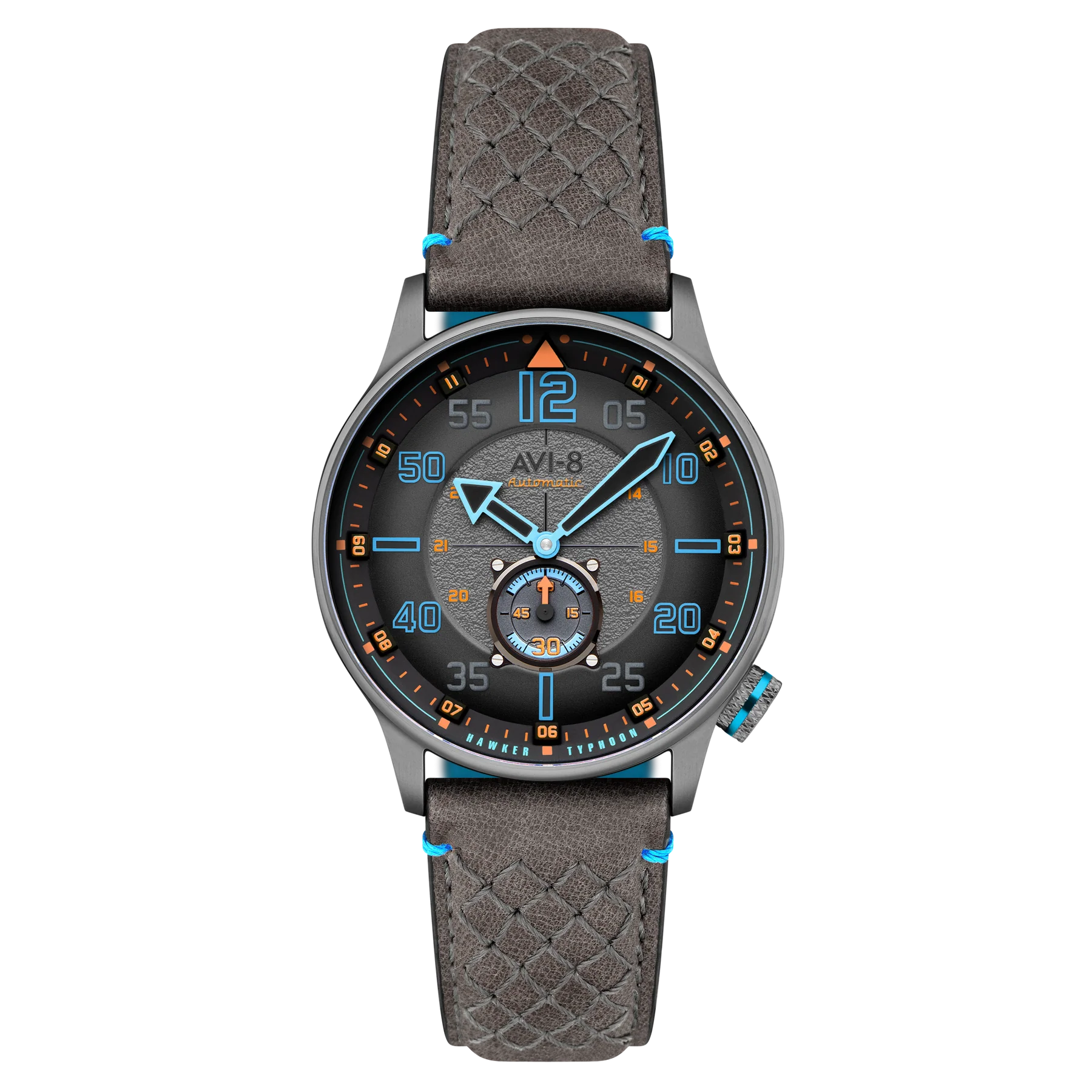 O Hawker Typhoon Baldwin Automatic homenageia seu homônimo com ponteiros e um mostrador inspirado no painel de instrumentos da aeronave icônica. O padrão de costura de couro na pulseira reflete o design do assento do Hawker Typhoon, realçando seu apelo autêntico.