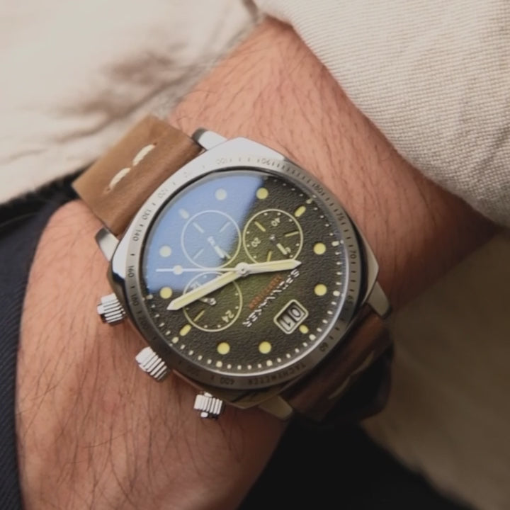 • O Hull Chronograph combina engenharia impecável com uma estética vintage em uma caixa acolchoada impressionante, porém sofisticada. Este é um relógio elegante e sem esforço, construído para durar.