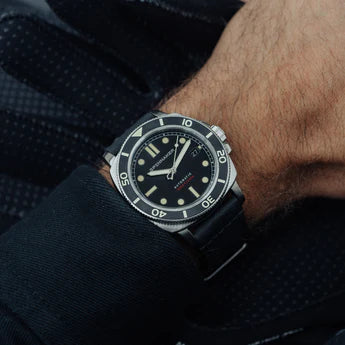 - O mergulhador Hull é um relógio robusto e elegante, projetado com uma referência à estética vintage, mas fundido a uma fabricação deliberada, dedicada e detalhada em todos os sentidos.