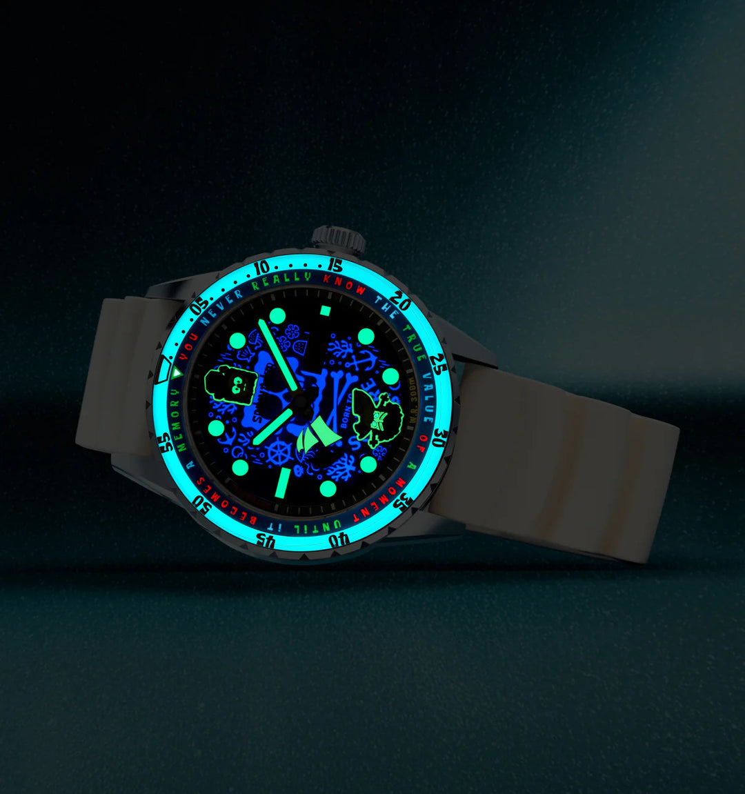 Projetados para o mergulhador e aventureiro ávido, nossos relógios apresentam luminescência radiante que garante excelente legibilidade nas profundezas mais escuras e em condições de baixa luminosidade. Seja explorando o mundo subaquático ou navegando em aventuras noturnas, os mostradores e ponteiros luminosos da Spinnaker fornecem o brilho necessário para você se manter no rumo certo.