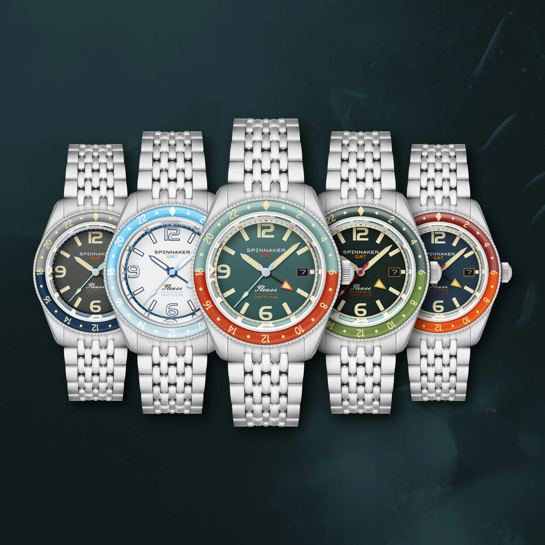 Impulsionado por um movimento japonês GMT automático, o Fleuss possui uma luneta giratória bidirecional com uma inserção de vidro, permitindo ajustes contínuos em tempo real. O formato redondo da caixa, complementado por uma lente anti-reflexo Sapphire, mostra a dedicação do Spinnaker à qualidade e durabilidade excepcionais. O mostrador apresenta índices aplicados, adicionando um toque de sofisticação ao design geral.