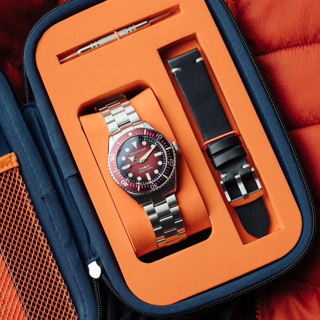 Cuidadosamente considerado e engenhosamente projetado, o Spence reúne proporções, desempenho e precisão para o que consideramos um dos melhores relógios de mergulho sempre vestíveis da atualidade. Com uma espessura de caixa líder do setor de 10,9 mm contra 300 metros de resistência à água, o Spence está pronto para causar um impacto sem esforço, mas com força.