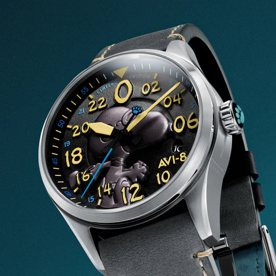 Os motores rugem. Snoopy está no ar. O Spitfire Peanuts Snoopy Flying Ace 24-Hour Automatic Limited Edition já está disponível. Robusto, elegante e feito para colecionadores, cada relógio possui um mecanismo automático de 24 horas que mantém sua missão precisa.