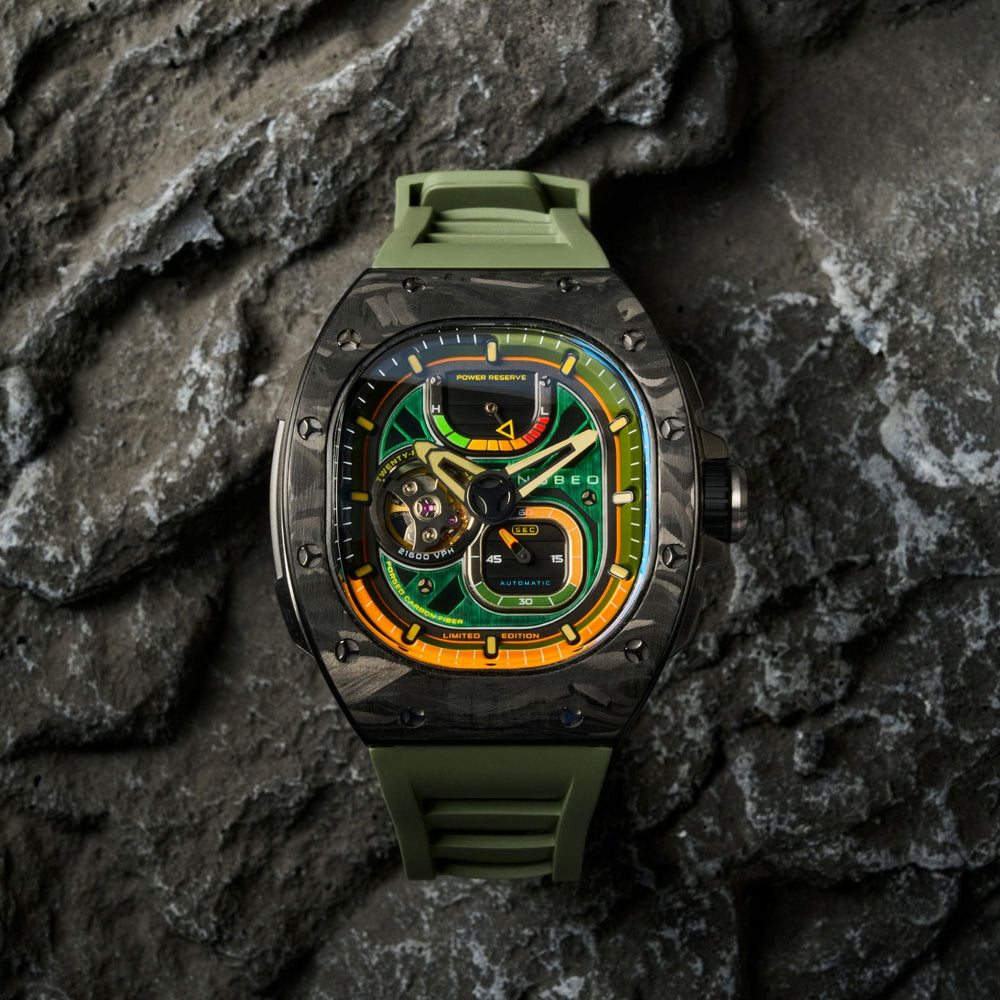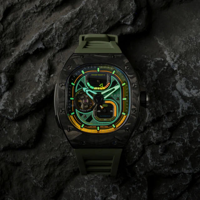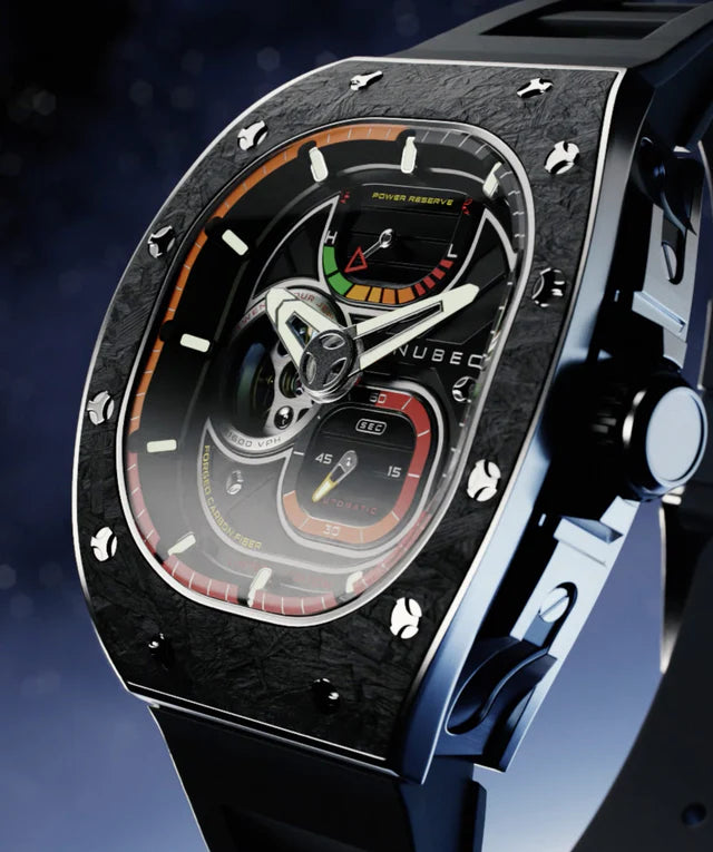 - Nomeada em homenagem ao Volatiles Investigating Polar Exploration Rover (VIPER), esta coleção é inspirada na missão da NASA de explorar a Lua em busca de gelo e outros recursos potenciais. Cada relógio é meticulosamente montado a partir de camadas de filamentos de carbono, forjados a quente e usinados na caixa perfeita em formato de barril. Ele incorpora o espírito pioneiro com seu design e engenharia excepcionais.