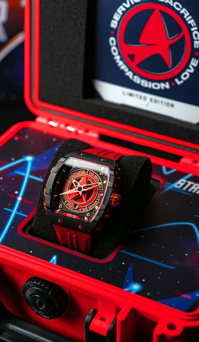 Cada relógio desta coleção de edição limitada presta homenagem ao espírito intrépido da Frota Estelar, capturando a essência da busca sem limites da humanidade pela descoberta.