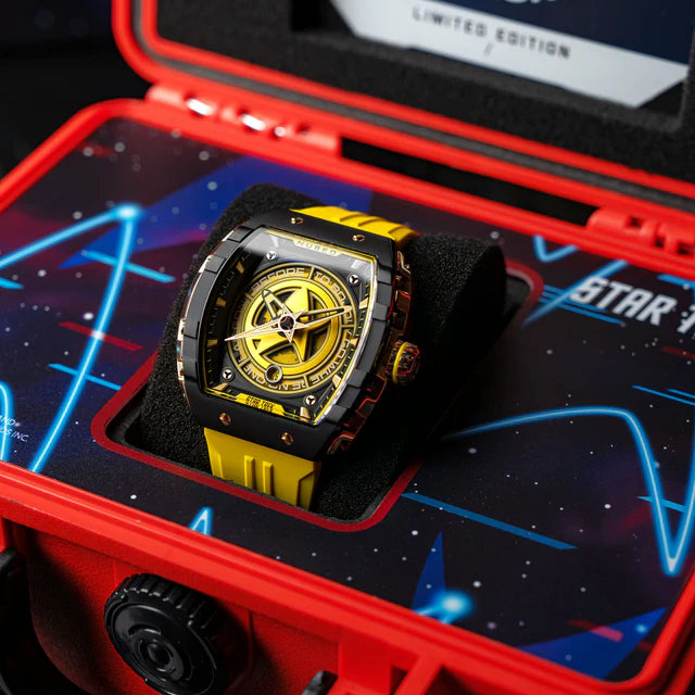 Cada relógio desta coleção de edição limitada presta homenagem ao espírito intrépido da Frota Estelar, capturando a essência da busca sem limites da humanidade pela descoberta.