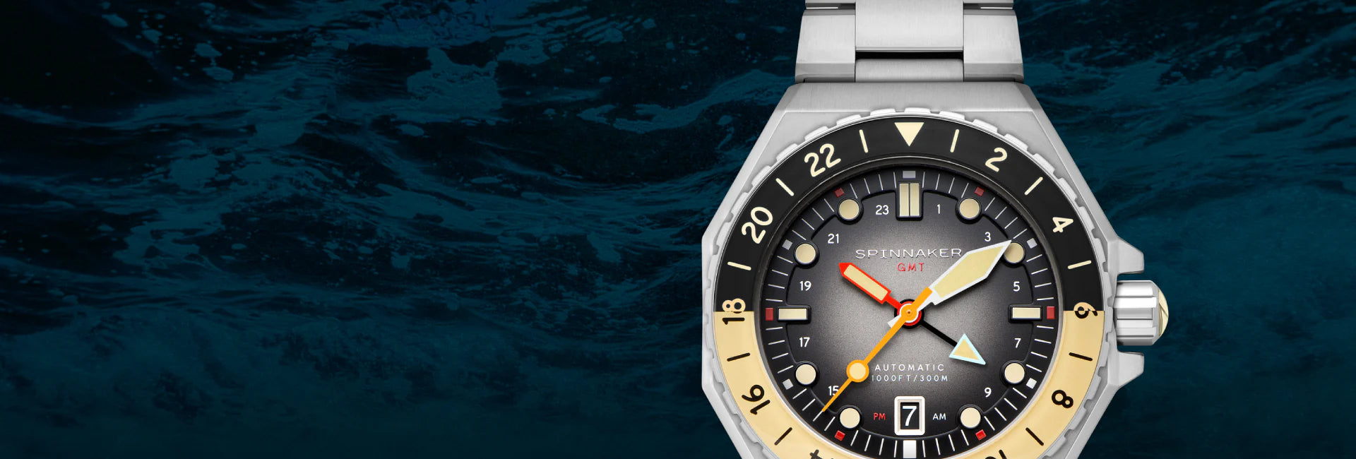 • O Dumas GMT é um relógio automático pronto para viagens ao redor do mundo equipado com o movimento automático Seiko NH34 GMT. Um estudo ousado em mecânica de relógio esportivo de alta qualidade injetado com o estilo e o estilo sinônimos do nome Spinnaker. Com uma pulseira de aço inoxidável sólido em formato hexadecimal anexada e uma pulseira de borracha extra correspondente, o relógio é adequadamente projetado para todas as condições.