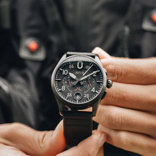 Combinando a estética clássica e moderna da relojoaria, o Lock apresenta um mostrador de dois registros limpo, simétrico e altamente legível, inspirado nos detalhes dos icônicos instrumentos do cockpit do Spitfire.