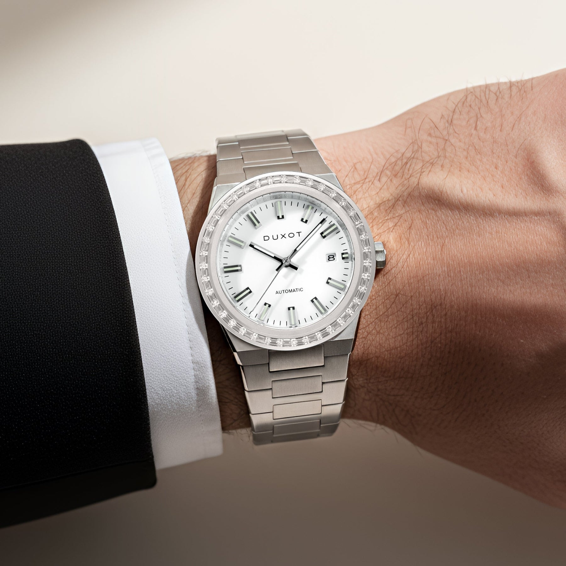 Equipado com um confiável mecanismo automático japonês, cada peça apresenta uma lente de safira resistente e um fundo transparente que revela a mecânica interna. O Alicante dá continuidade à busca da Duxot por clássicos para o dia a dia.