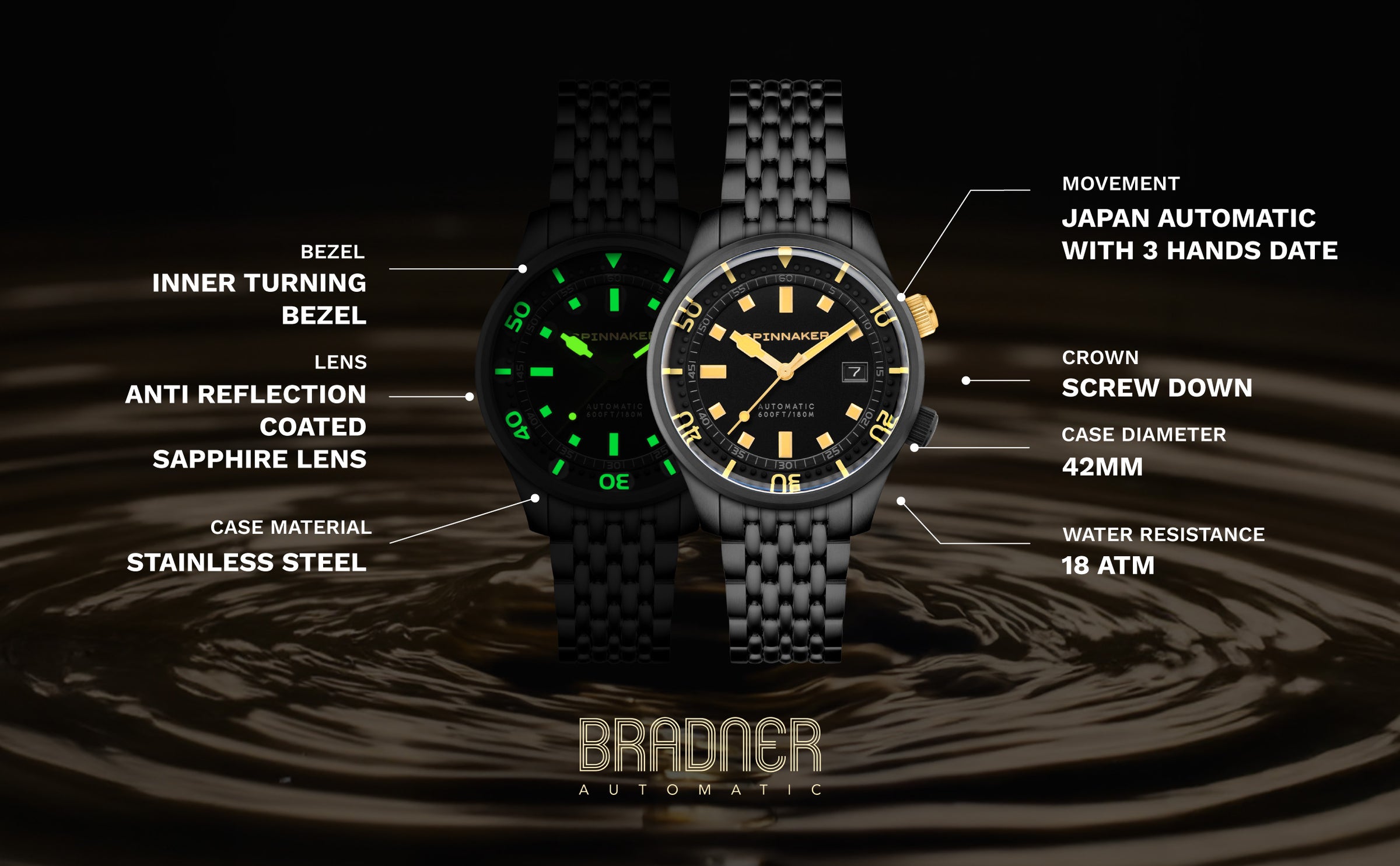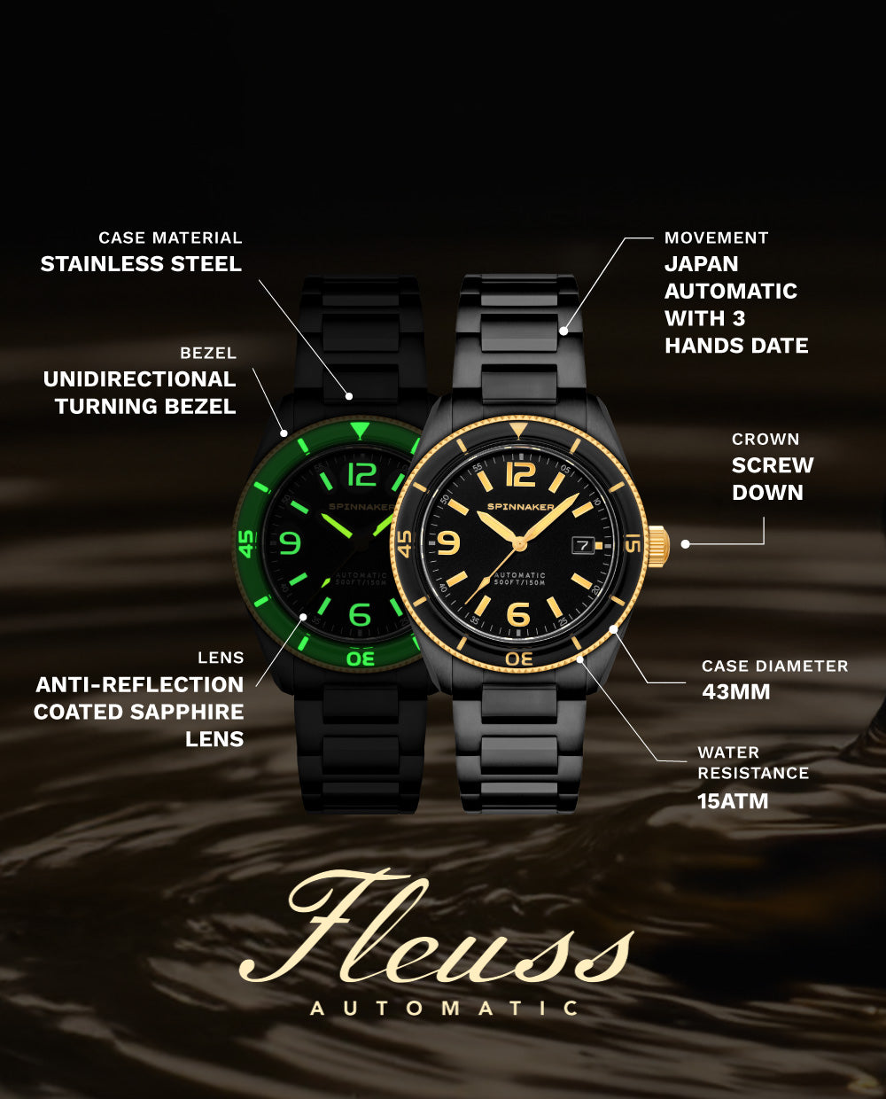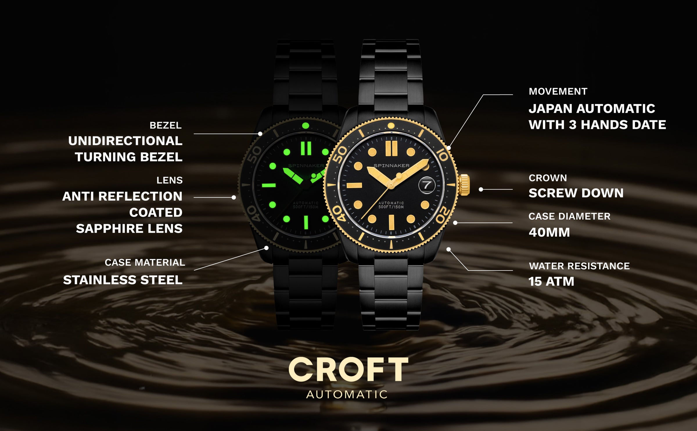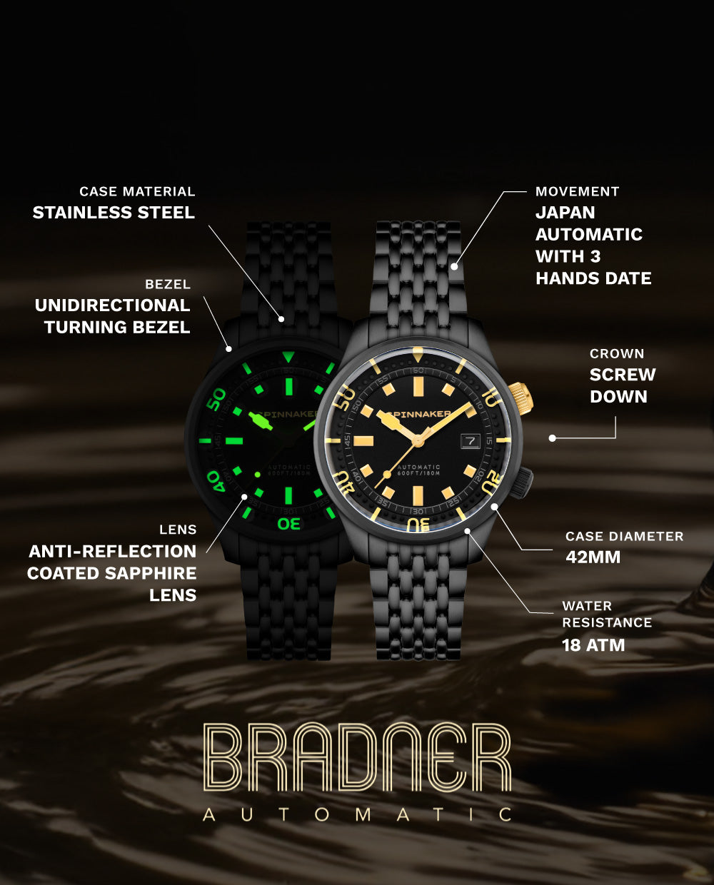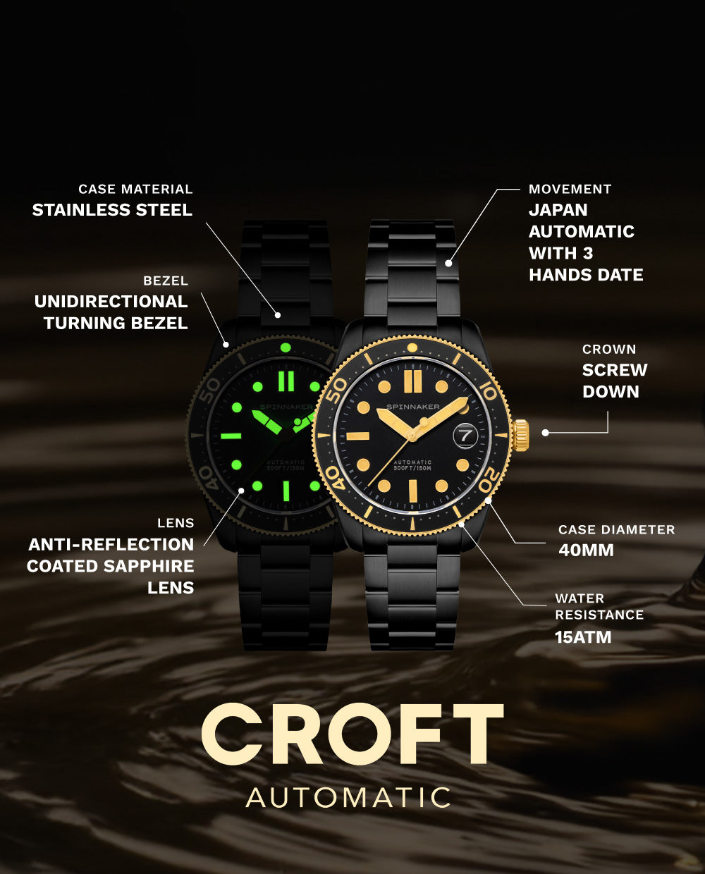 Os três best-sellers da Spinnaker estão de volta — o Croft, o Fleuss e o Bradner — agora repaginados em um clássico preto e dourado. Uma coleção cápsula que nasce do contraste, da precisão e do prestígio.