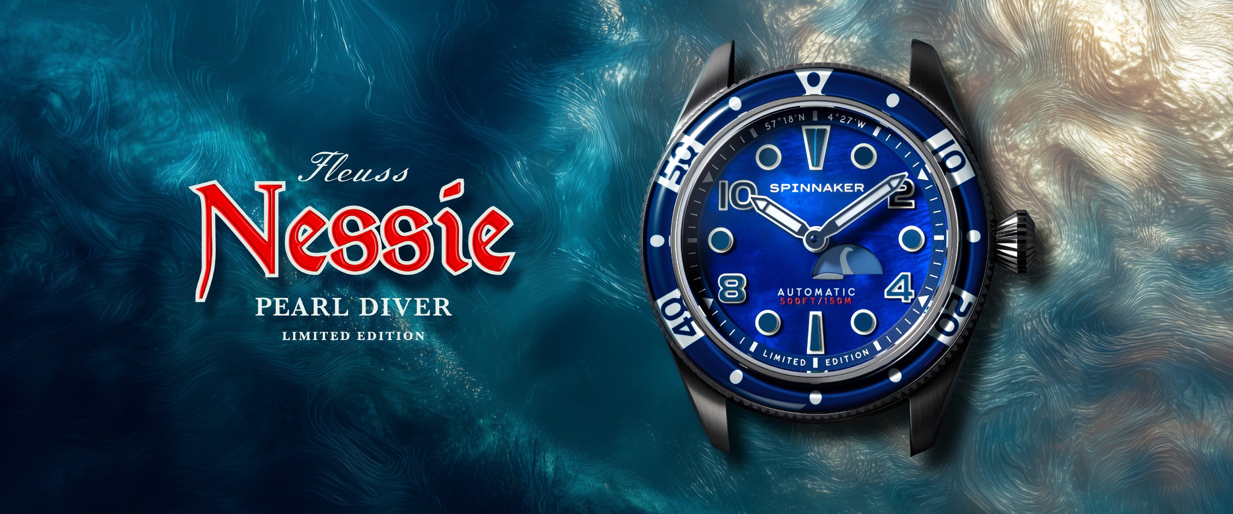 A Spinnaker Watches anuncia orgulhosamente o lançamento do Fleuss Automatic Nessie Pearl Diver Limited Edition, uma colaboração com a Scottish Watches. Limitado a 650 peças individualmente numeradas.