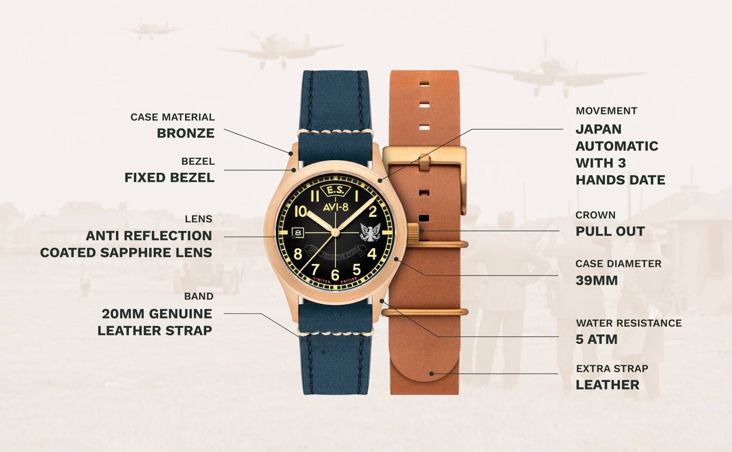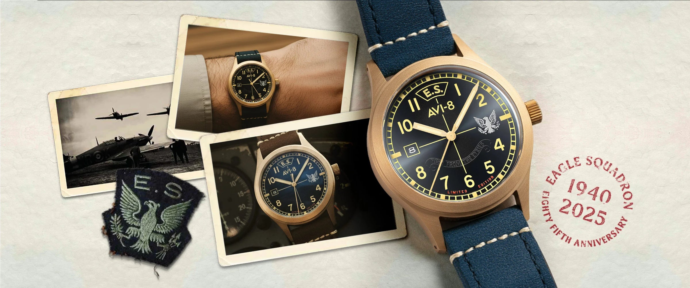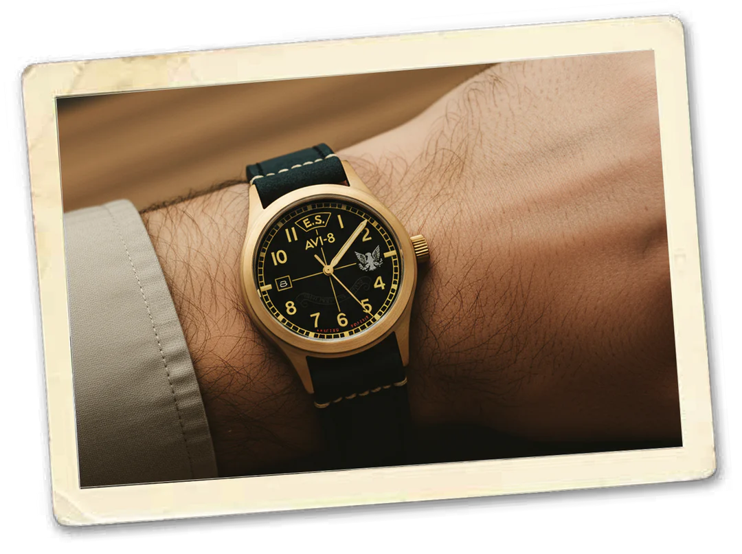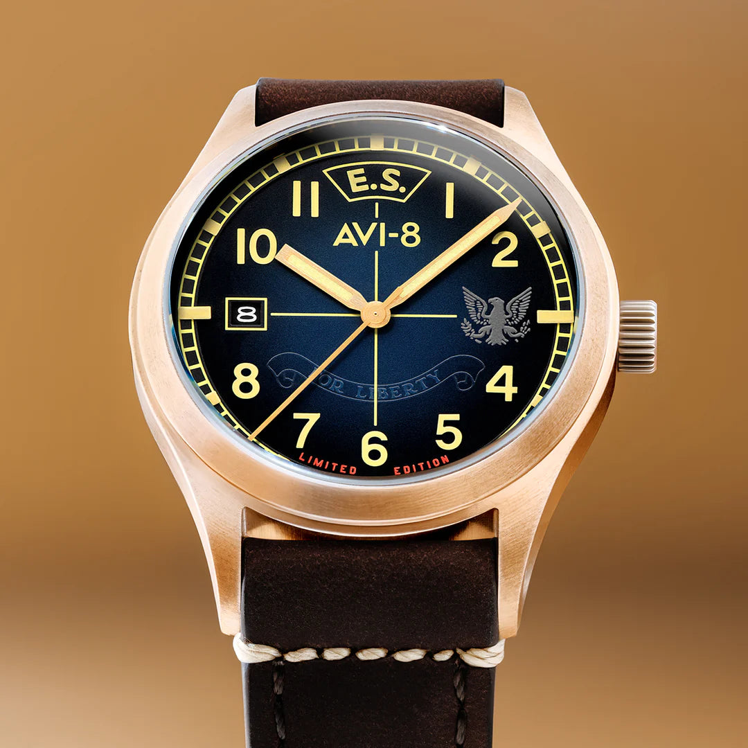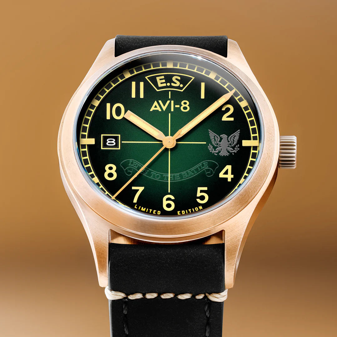 O Flyboy Eagle Squadron Automatic Bronze 85th Edição Limitada chegou. Comemorando 85 anos de bravura na aviação, este relógio automático em bronze captura a essência da coragem em voo.