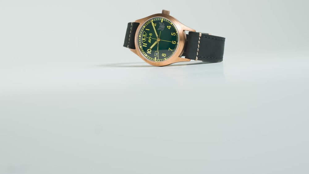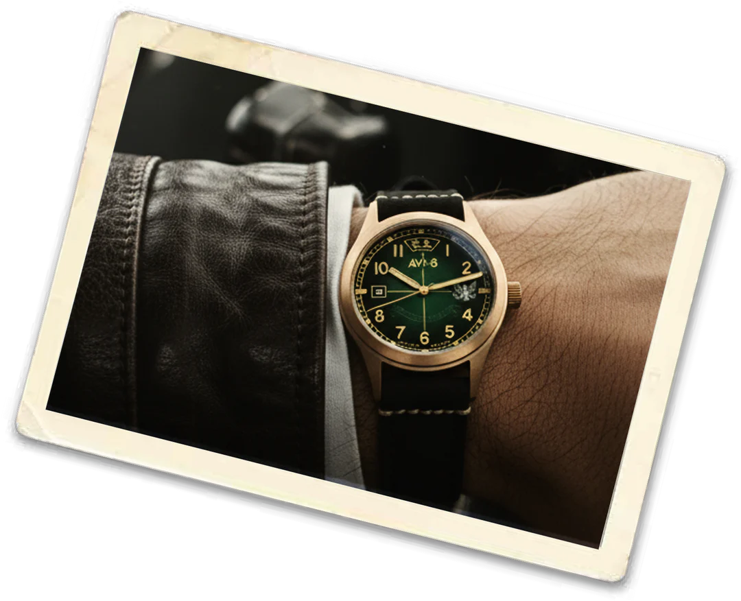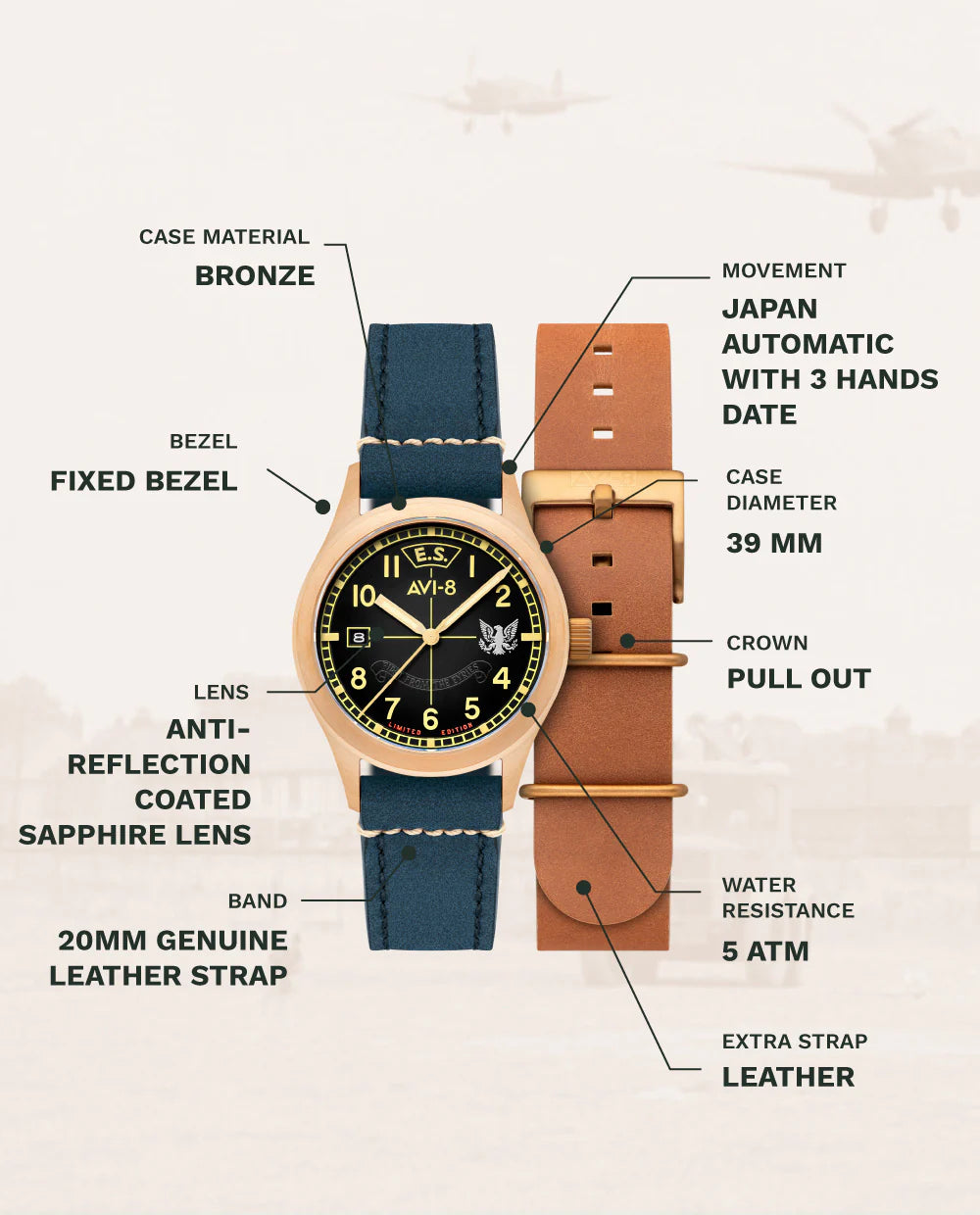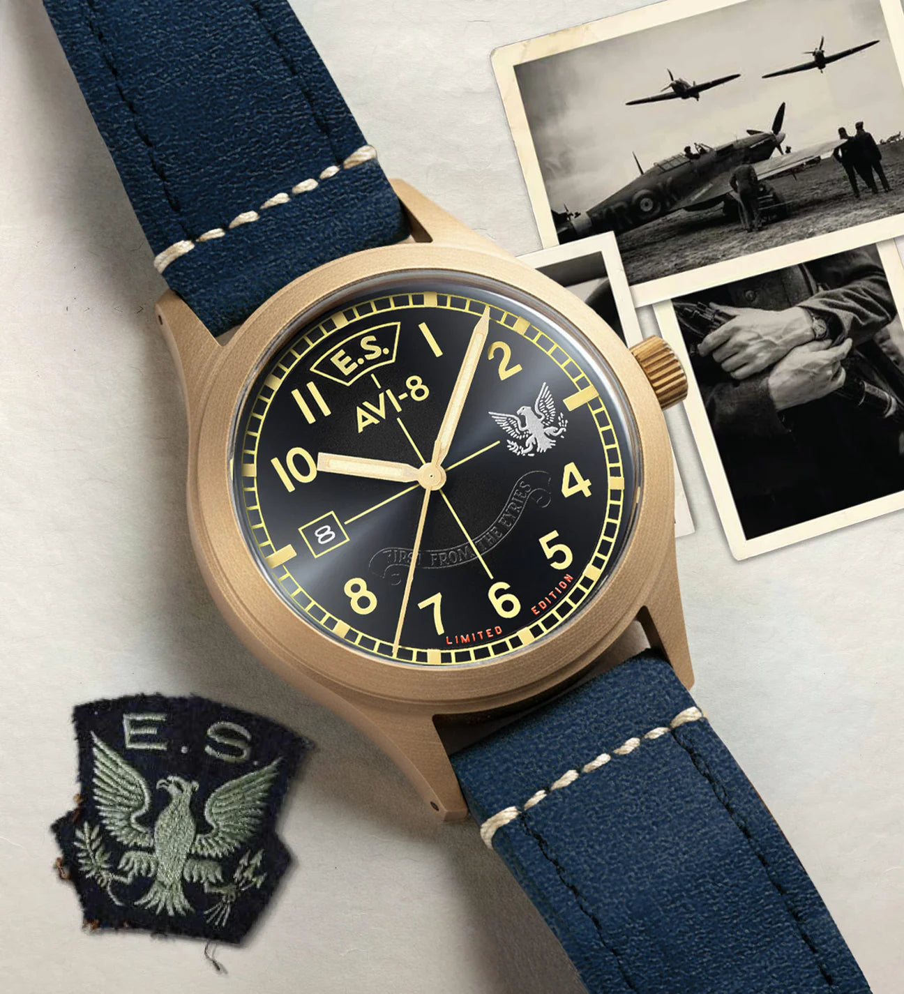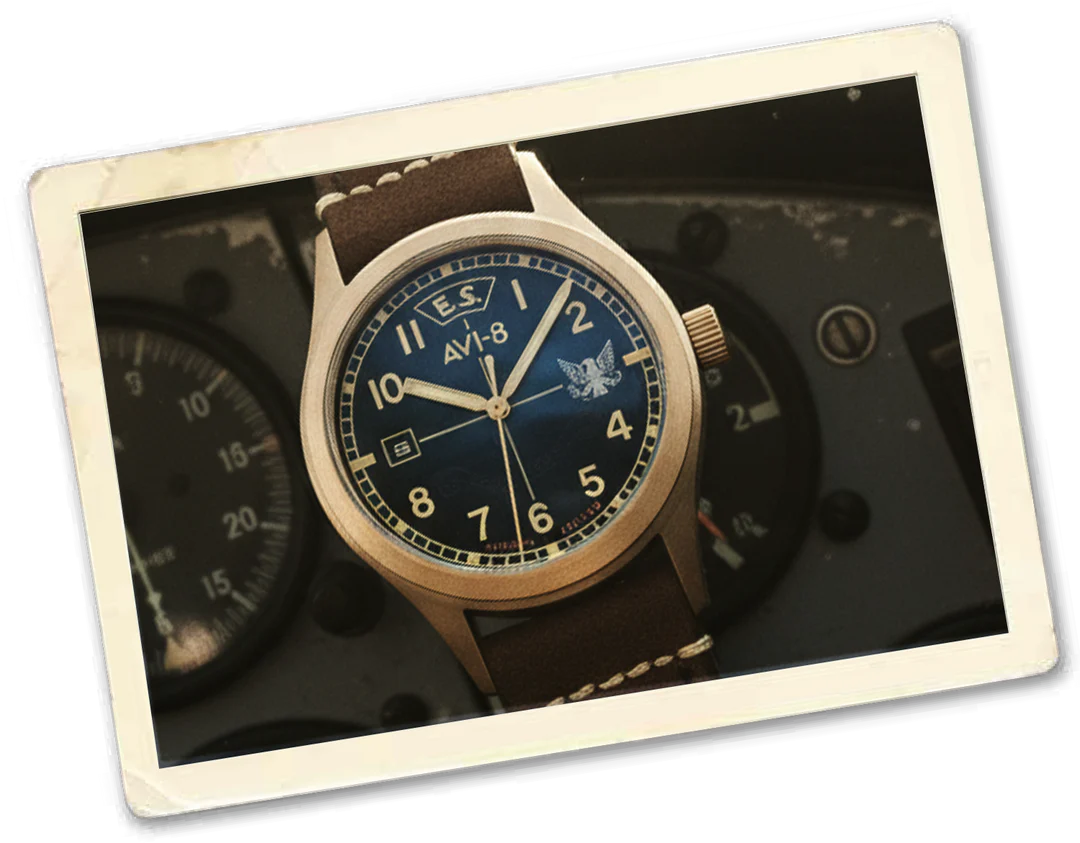O Flyboy Eagle Squadron Automatic Bronze 85th Edição Limitada chegou. Comemorando 85 anos de bravura na aviação, este relógio automático em bronze captura a essência da coragem em voo.