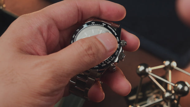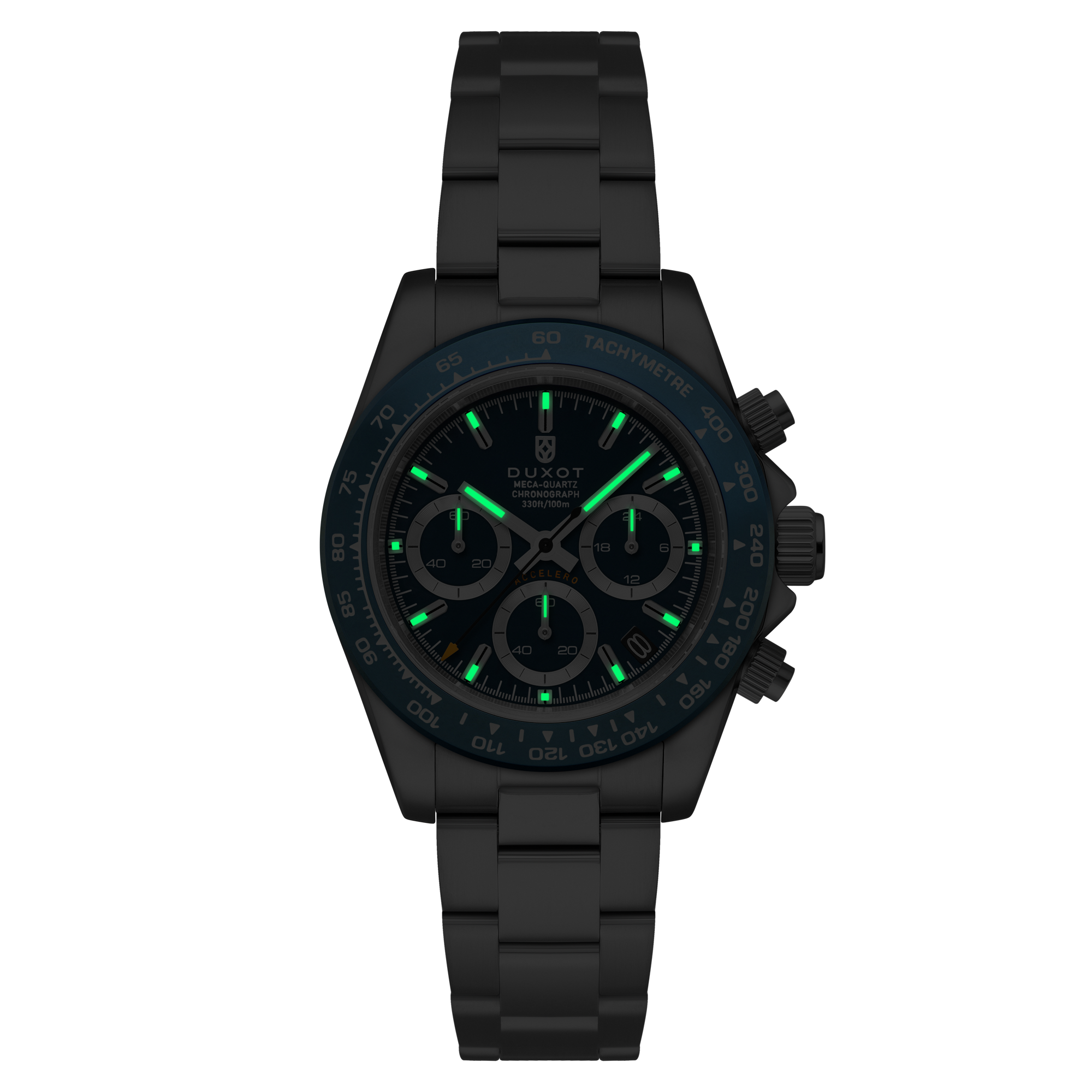 Equipado com um mecanismo de quartzo cronógrafo japonês e alojado numa robusta caixa de aço inoxidável de 40 mm, o Accelero é o acessório essencial para o seu pulso.