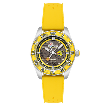 Um relógio divertido e de engenharia refinada que dá vida aos adorados personagens da Fenda do Biquíni. Movido pelo mecanismo automático esqueletizado japonês NH70, esta edição limitada apresenta os olhos inspirados nos personagens no aro e um ponteiro de segundos com o símbolo mais icônico da Fenda do Biquíni. Este relógio é tão prático quanto colecionável.