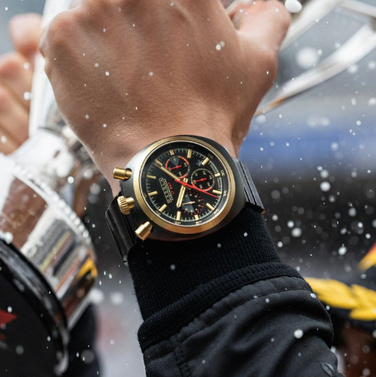 Um relógio arrojado inspirado no mundo de alta velocidade do automobilismo de rali. Disponível em cores distintas, este cronógrafo foi concebido para quem vive a vida em alta velocidade.