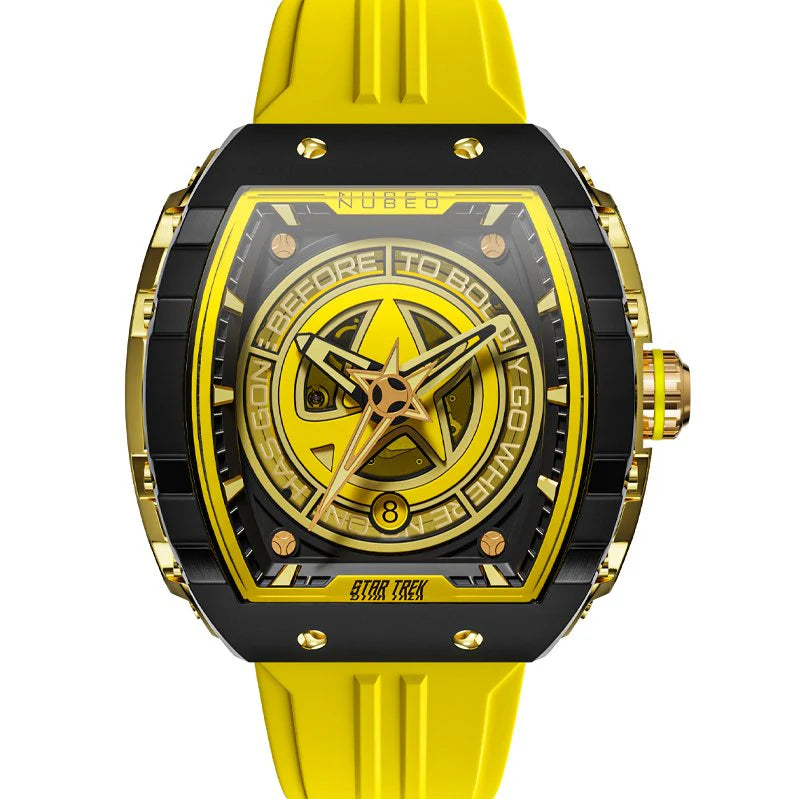 Com um mostrador personalizado moldado em 3D inspirado na USS Enterprise, o Magellan Automatic foi projetado para parecer que está viajando em velocidade de dobra. O relógio é movido por um preciso mecanismo automático japonês, com uma pulseira de borracha elegante e durável que garante conforto mesmo nas missões intergalácticas mais intensas.