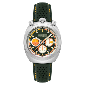 Da expressão italiana para "cabeça de touro", Testa di Toro - ecoa os ousados cronógrafos de rally que impulsionaram os limites do design de relógios esportivos durante as décadas de 1960 e 1970. Redimensionado e redesenvolvido com proporções modernas, este relógio é uma bela lembrança de uma era animada no design da relojoaria.